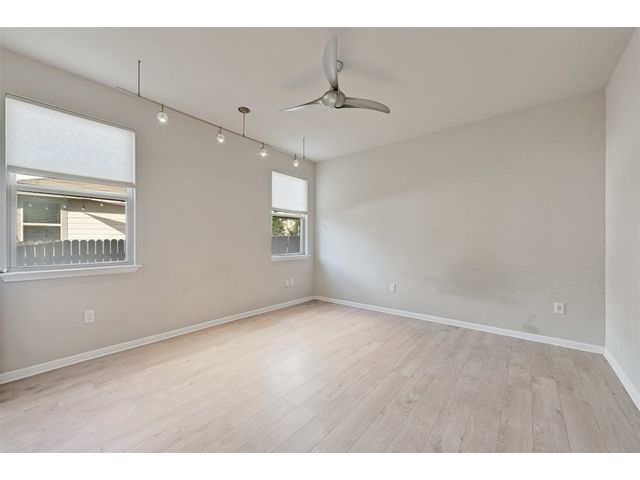 This stunning Searight Village home offers the lock and leave lifestyle! One-story contemporary home built in 2017 featuring 3 bedrooms & 2 full baths. Open concept living area with tall vaulted ceilings. Features contemporary lighting fixtures, updated ceiling fans, beautiful oversized tile floors, and vinyl plank flooring. The home chef will love the 42' kitchen cabinets, stainless appliances, pantry & sleek tile backsplash. The private Owner’s Suite fills with abundant natural light and begs for rest & relaxation. Ensuite bath with modern floating vanity & decadent walk-in tile shower & spacious walk-in closet. Pristine vinyl plank floors in the Owner’s Suite, one of the primary bedrooms, and the hallway to the bedrooms. One of the secondary bedrooms is perfect for a home office! HOA Fees cover exterior water, landscaping (front & back), trash & recycling. Full sprinkler system automatically controlled by the community. Located minutes from South Park Meadows, the burgeoning South Menchaca entertainment district, the New Slaughter/ I-35 HEB, and tons of amazing South Austin restaurants. Searight Village is located next to South Austin’s amazing Mary Moore Searight park with over 300 acres of gorgeous hike & bike trails, a disc golf course, playground and park, and sports courts. Easy access to I-35, South Congress, & South First street. A quick 20-minute commute to Downtown Austin.