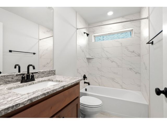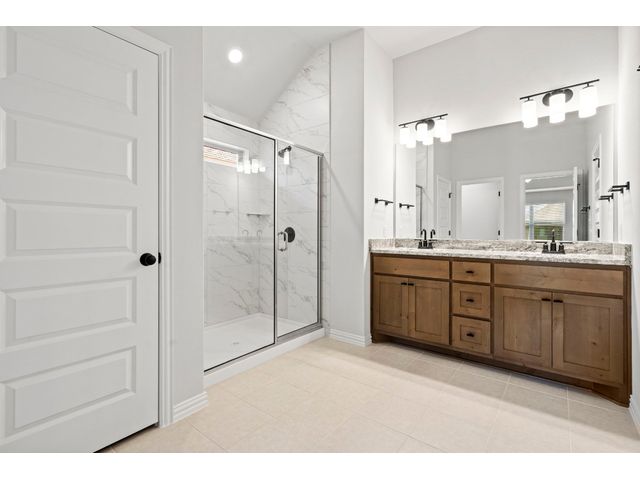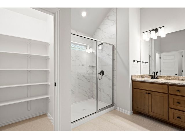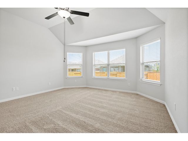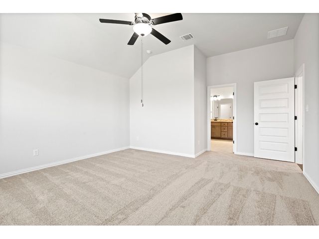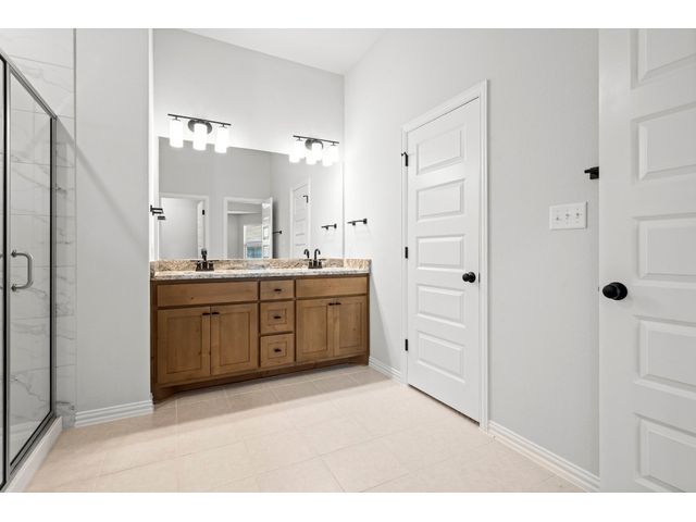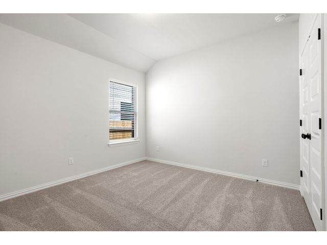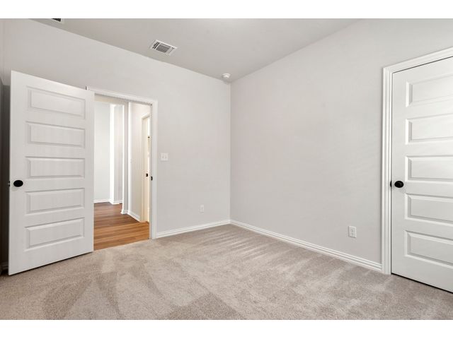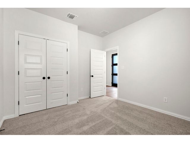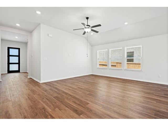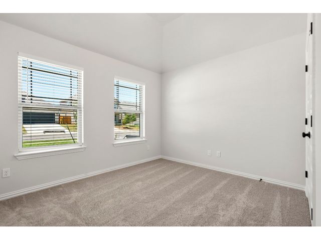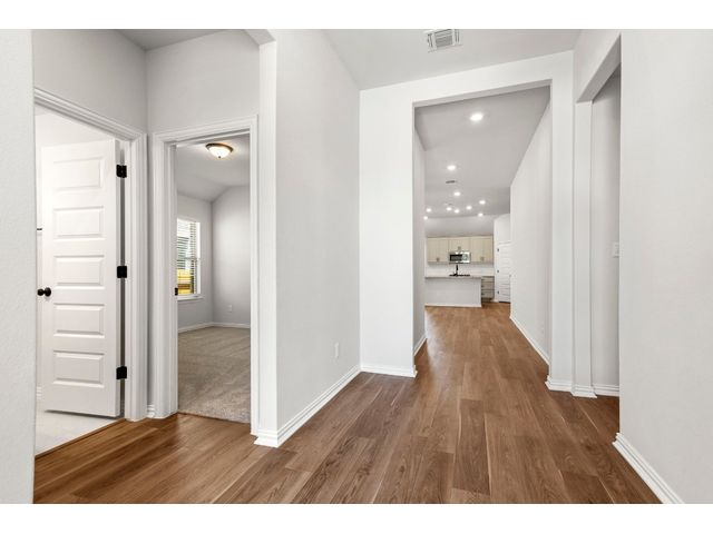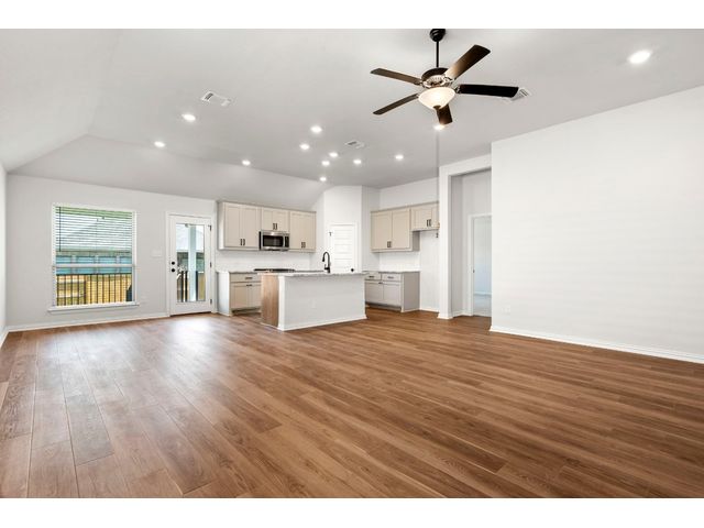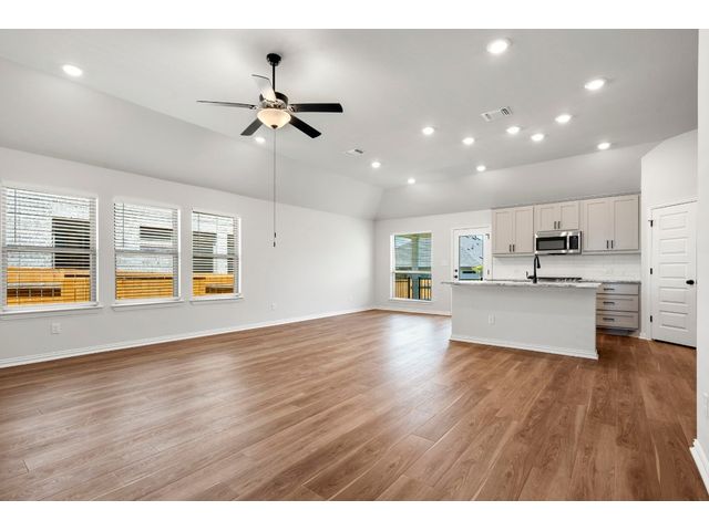 Brand new home in 6 Creeks - 4 bedrooms, two baths. Open floorplan. Upgrades including: Luxury vinyl wood look plank flooring in main and halls, bay windows in primary, extended and covered patio, tile, cabinets and contemporary front door! One story, two car garage. Spacious kitchen featuring level 3 granite counters with stainless appliances, center island and pantry. Main suite features bay windows, large shower, walk in closet, potty closet, large linen closet and double vanity. Interior lot. Covered patio with wrought iron railing, full automatic sprinklers and water softener loop. Hays CIDS Schools