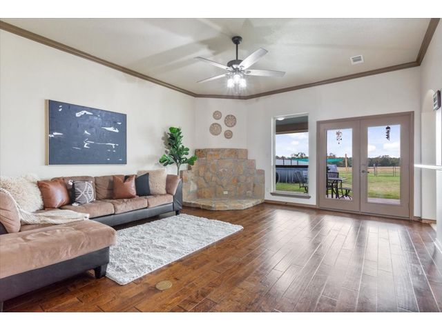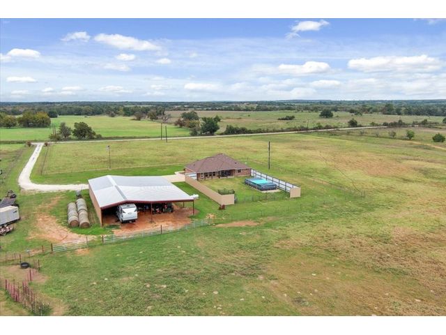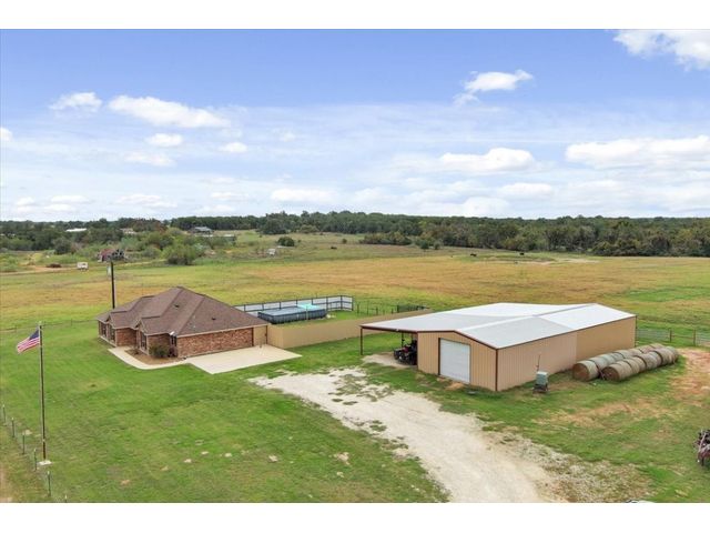 19+ Acres nestled in the serene town of Thorndale! Easy commute to the new Samsung Semiconductor. This single-level residential farm home sits majestically on just over 19 acres of lush countryside, offering a perfect blend of comfort and tranquility. As you step into the home, an inviting office room greets you to the right, setting the tone for a perfect work-from-home space. The well-designed layout encompasses 3 bedrooms and 2.5 bathrooms.The primary bathroom is a luxurious retreat, featuring a soaking tub, a separate walk-in shower, and a spacious walk-in closet. Dual vanities with ample storage provide both functionality and elegance. The secondary bedrooms are adorned with built-ins and ceiling fans. Floor-to-ceiling windows illuminate the rooms, creating a bright and airy atmosphere. The living room boasts a dedicated area for a wood-burning stove,There is NOT currently a wood burning stove, perfect for cozy evenings. The heart of this home is undoubtedly the gourmet kitchen, featuring a built-in double ovens and a gas cooktop. The kitchen is a chef's delight, complete with a walk-in pantry and a convenient center island for culinary adventures. The adjacent massive mudroom not only offers additional pantry and storage space but also accommodates two washer and dryer hookups, making laundry a breeze. A half bathroom in the mudroom adds convenience for guests. Step outside to the backyard oasis, where a metal privacy fence encloses the property. A covered patio extends the entire rear of the house, creating an ideal space for outdoor gatherings and relaxation. An above-ground pool adds a refreshing touch to warm summer days. The 40x30 workshop is insulated and offers a flexible work space. There is also a two car carport, covered storage and a 40 x 58 Covered Pen/ Arena. There is a tank on the back side of the property so bring your cattle or other livestock and an electric gate at the entrance to the property.