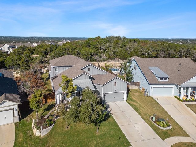 Come embrace life at the top of Hazy Hills in Dripping Springs’ Headwaters community! Exquisite luxury masterpiece nestled away in a highly desirable hill country community with world-class amenities, breathtaking views, and a welcoming sense of neighborliness. Completed in 2020, this timelessly elegant home sits perched upon a hilltop and backs to a greenbelt, offering both privacy from the street and adjacent neighbors. This hill country dream home is loaded with upgrades including a 12’ island with quartz countertops, farmhouse sink, birch butternut hardwood flooring, designer lighting, and more. It also comes fully equipped with an app-controlled Smart Home integration system! A luminous open floor plan makes entertaining a breeze with tall ceilings and walls of windows that provide a picturesque greenbelt backdrop along the entire backside of the home. Enjoy a secluded primary suite with expanded bay windows, a luxury ensuite bath, and dual walk-in closets. Three secondary bedrooms are well-appointed throughout the main level while the second floor provides a full guest suite. Your secluded backyard oasis was thoughtfully designed with an abundance of mature trees, native plants, intricate stonework, gorgeous fencing, and solar lighting. The three-car finished garage provides added storage space with tall ceilings and is perfect for creating your ideal workshop. Excellent proximity to the main park, pool, pavilion, and coffee shop. The Oakwood Market is coming soon as well as the mile-long 290 frontage development of the Station at Headwaters. All these incredible conveniences are just a stroll or bike ride away. Award-winning Dripping Springs schools with the newest elementary school coming to Headwaters as soon as 2025! Only 25 min west of Downtown Austin and just 30 min to the airport. Experience the realization of your hill country living dreams in this stunning contemporary residence. Take the 3D tour & walkthrough video & schedule a showing today!