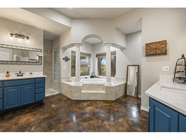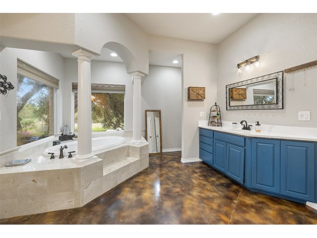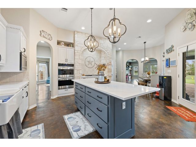 UNRESTRICTED ranch-style luxury estate on 8.15 acres in the picturesque countryside just 13 miles north of charming Downtown Georgetown. Amazing backyard oasis w/ an in-ground pool+spa+private 9-hole putting green with real grass & irrigation! There’s also a huge, detached 28'9" X 49'9" workshop (w/ water & electricity), an attached two-car garage, and a 36kw Generac generator with a transfer switch. Come and live the quintessential Central Texas country lifestyle at the end of a quiet cul-de-sac on Freedom Dr! Custom built to perfection, in celebration of Texas heritage with Lonestar accents throughout the home. Plentiful oversized windows throughout the home allow you to enjoy panoramic views of the sprawling Texas countryside and your own private acreage. Step through the custom front doors to discover instant wow factor with soaring tray ceilings, gorgeous stained & polished concrete floors, and sweeping archways leading to the expansive 3,836 sq ft single-story floor plan. Featuring a centrally located living room, a classically elegant gourmet kitchen, a formal dining area, and a welcoming family room. Three secondary bedrooms are secluded away in their own wing with a full bath, while a guest suite is tucked away to the right of the foyer along with a small home office. Amazing oversized primary suite, which takes up the entire right wing of the home with a royal deluxe ensuite bath, a massive walk-in closet, and a private sitting room with direct access to the back porch. The backyard oasis is ready for your immediate enjoyment while 7 expansive acres are ready for your ideal use of unrestricted countryside space. Large fenced-in front yard perfect for pets. Excellent Georgetown ISD schools. Super low 1.68 tax rate! Easy access to I-35 and perfectly situated halfway between Austin & Killeen. Make your Texas countryside dream living a reality today. Call to schedule your showing today! Additional 7.18 acres next door also for sale MLS #4881891.