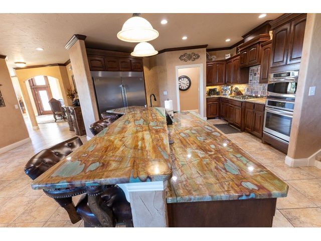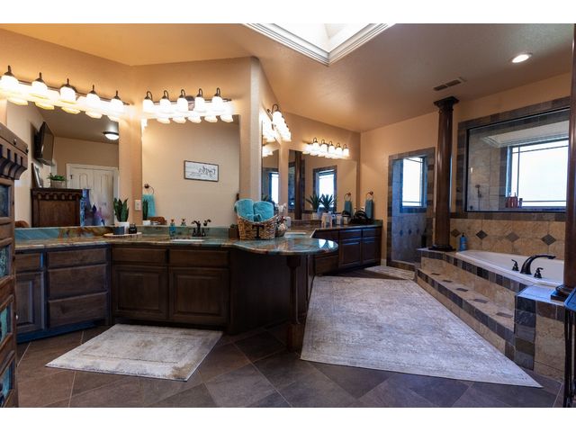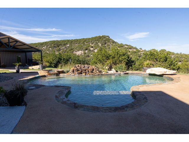 Beautiful Cedar Creek Estate is listed for sale. This exquisite home has been completely remodeled inside and out. As you walk thru the large iron doors the grand foyer offers cathedral ceilings, a beautiful custom stairway and wine room to your right with the dining room featuring custom lighting to the left. Over head is a catwalk leading from one of the upstairs bedrooms and ensuite bath across to the additional bedroom and playroom...straight ahead you will take in the breathtaking view of the saltwater pool with hot tub and waterfall as well as the incredible mountainside from the den which has a warm elegance from the custom paint, built-ins and fireplace. Walking thru the home you will find yourself in the wonderful chef ready kitchen with stainless appliances, large gas cook top, built in microwave and beautiful granite eat in island, custom cabinets, butler’s pantry, monogram refrigerator and freezer, farm sink and breakfast dining area. The living room offers custom built-in cabinets, stone fireplace and tile flooring. The kitchen and living room are open concept with floor to ceiling windows taking in the amazing views. The Master Suite with huge master bedroom offers an outside entry door, wooden tray ceiling, milled hardwood flooring, office area, ensuite bath with granite countertops, dual sinks, large countertop with custom cabinets and drawers, jetted garden tub, tile and wooden pillar accents, walk-in tile shower with multiple shower heads and a large walk-in custom closet system with safe room. There are two staircases leading upstairs to the additional bedrooms and baths, playroom and theater room. There is also a rooftop deck with custom iron railing overlooking the pool and back yard. The covered outdoor living space is just off the den, kitchen and Livingroom offering plenty of room to lounge in the shade or in the sun on the rock patio by the pool...see attached documents for full write up.