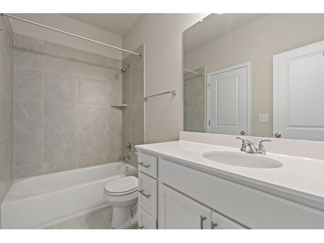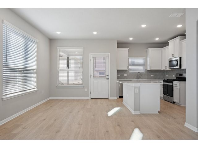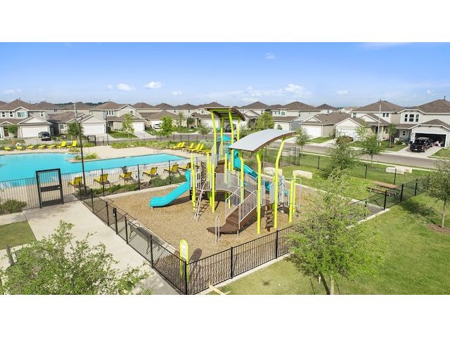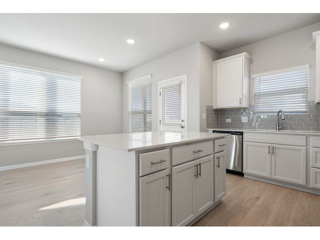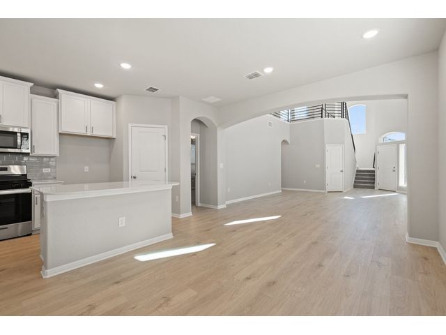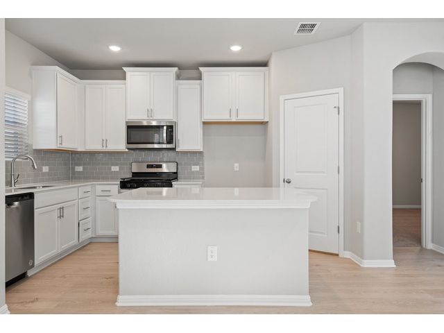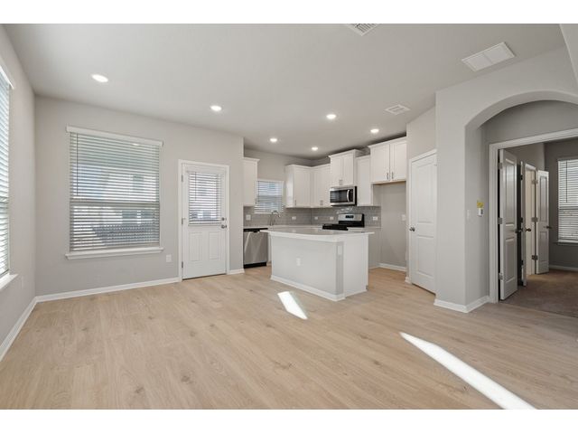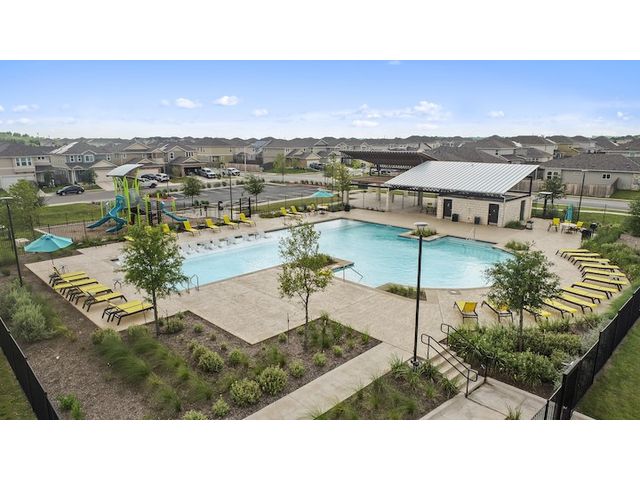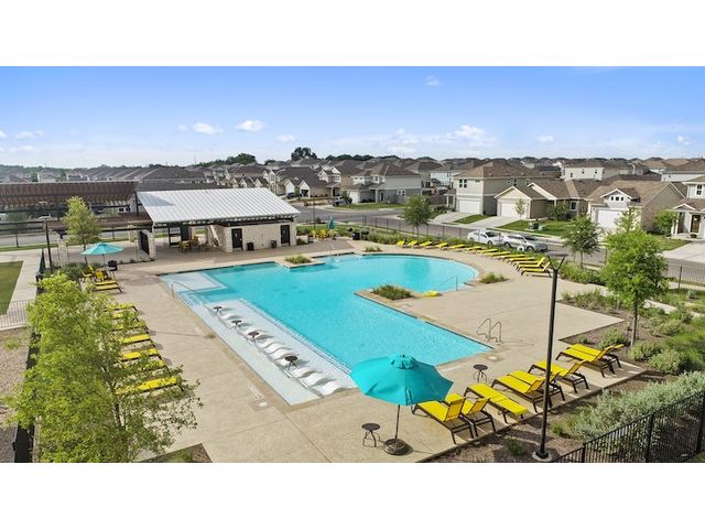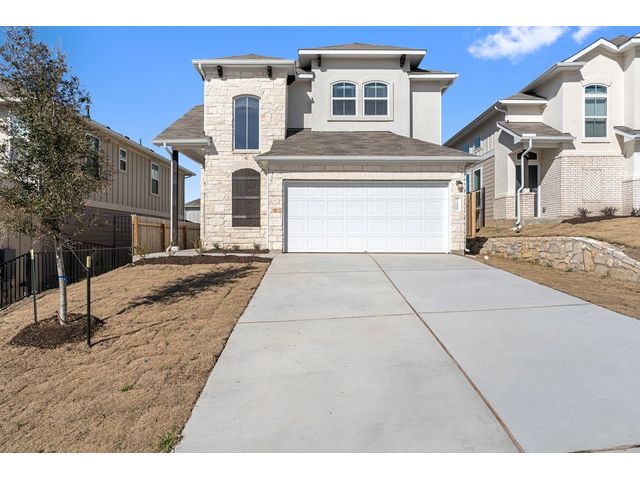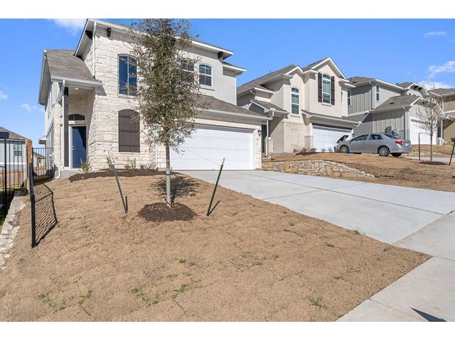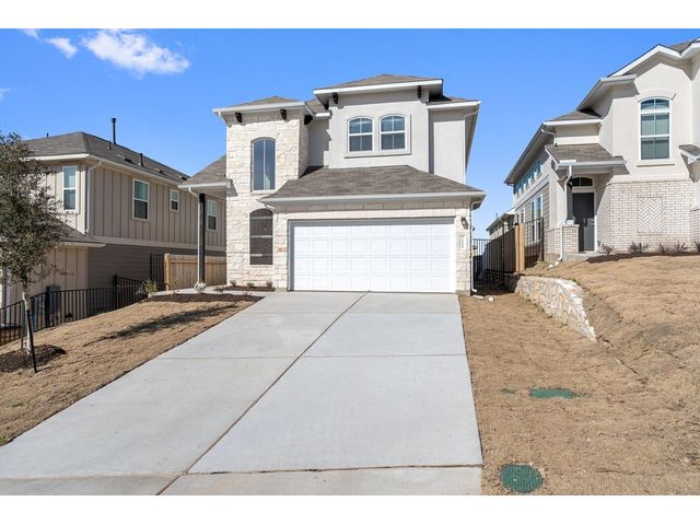 Interest rates as low as 3.875% in the first year, available on select homes for qualified buyers with Milestone Community Builders' preferred mortgage company. See sales representative for details. This home features 42” Linen white cabinets throughout, Della terra quartz kitchen countertops and beautiful island, with Gray glossy 3x6 Subway Tile kitchen backsplash. The RevWood, “Nimbus Oak”, flooring throughout the Living and dining area really compliment the interior design scheme! Structural upgrades include modern horizontal stair railings, and a covered patio! Vistas of Austin also features an amenity center with a playground and pool with a brand new dog park. Located in AISD. Tax rate is 1.97%.