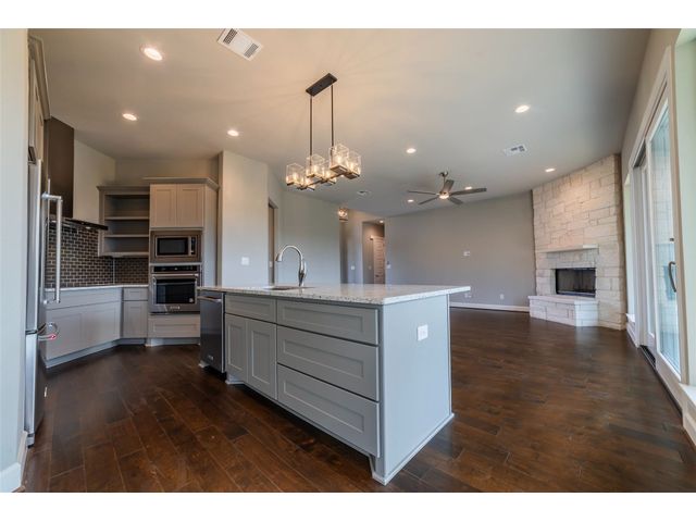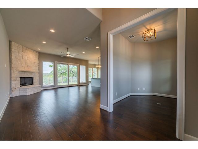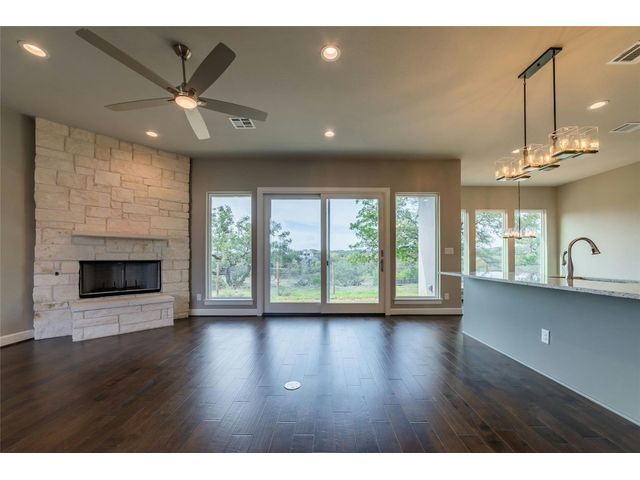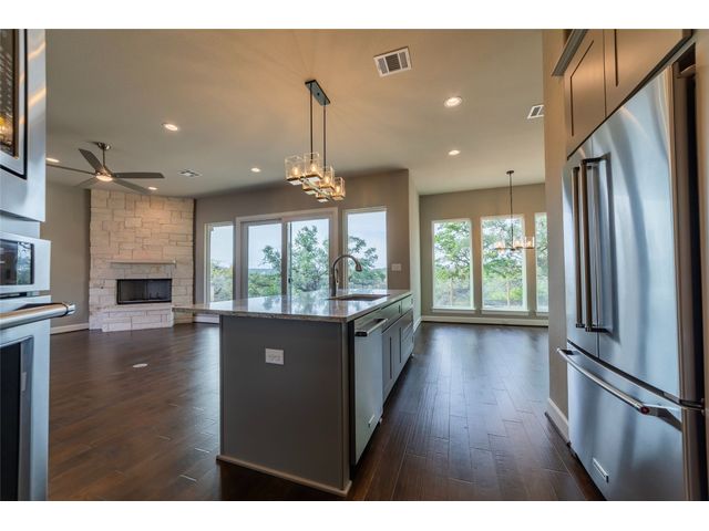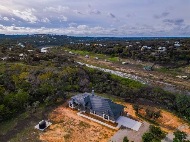 There is 284 feet of waterfront, a custom boat dock with boat lift, electric is there as well. Travis CAD has home built in 2021, home just completed this year. Well and Septic, this home has a generator. Property is fully fenced and has beautiful trees. This beautiful home has 3 Bed 3 Baths. Gorgeous wood floors throughout the home, tile in bathroom's. White stone fireplace in living room, Formal dining or /Study. Kitchen is open to living room. Granite Counters, Wall Oven, Electric Cooktop , Beautiful tile backsplash, Island Vent a Hood, Kitchenaide Appliances. Oversize garage. VIEWS , WATER FRONT