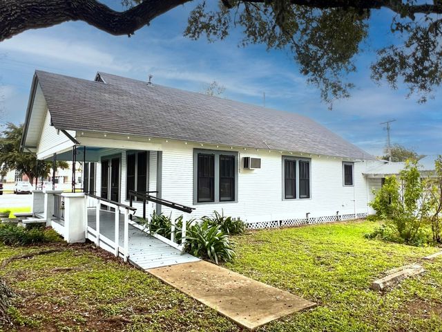 Take a look at this charming farmhouse in the heart of La Grange. It sits on a spacious third-of-an-acre lot that's zoned for both residential and commercial use. The central location makes it perfect for generating income or serving as your personal residence. Features include a carport with enclosed storage and a covered walkway. Inside, you'll find vintage details like a columned divider between the living and dining areas, as well as large windows with wood-frame screens. The front yard offers shade with an old oak tree, and there's a wheelchair accessible ramp at the front entrance. With its expansive lot, the possibilities for commercial expansion, a workshop, daycare, and more are limitless.