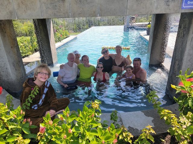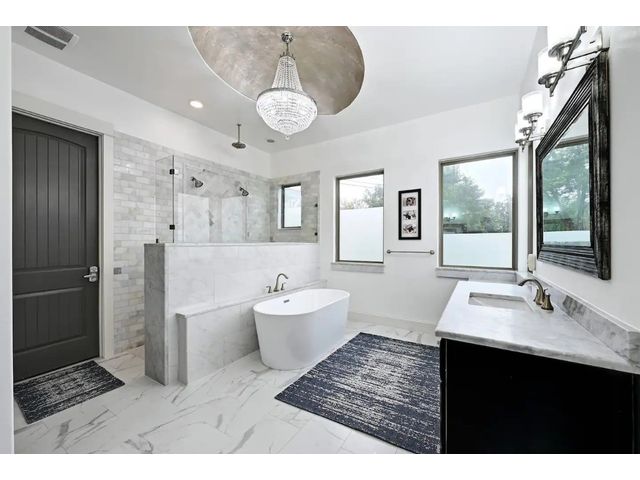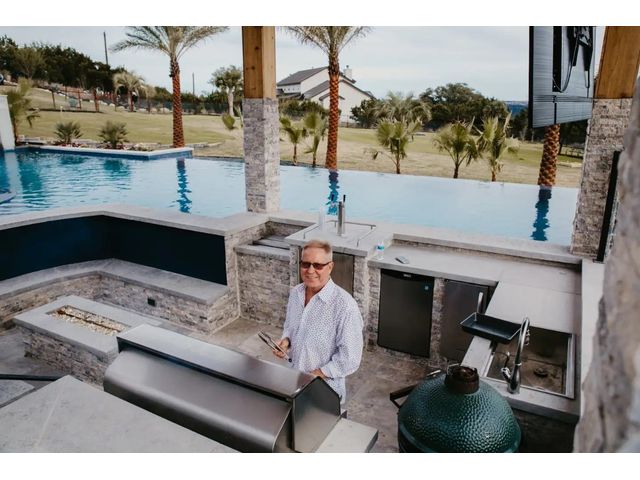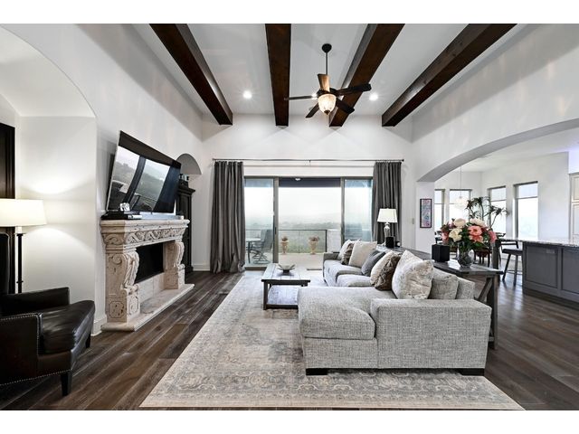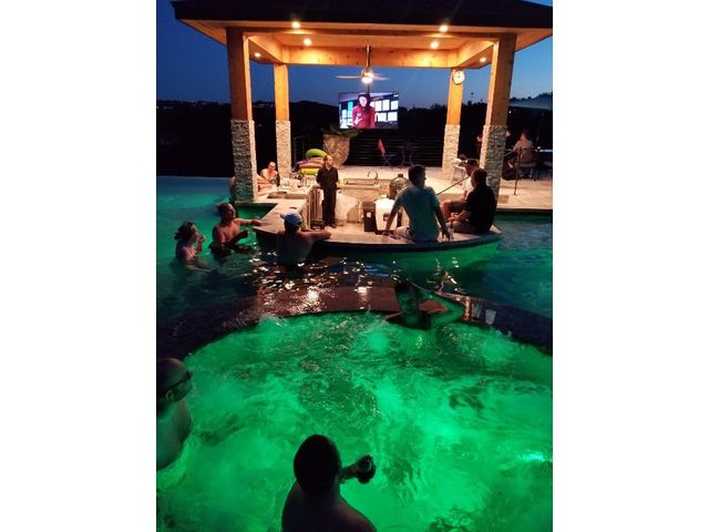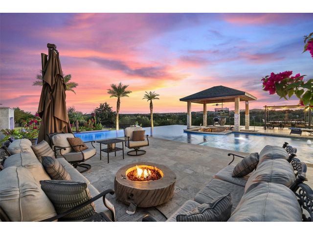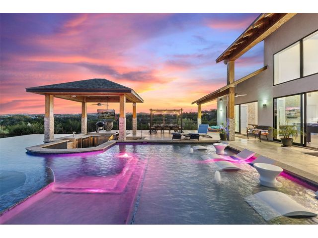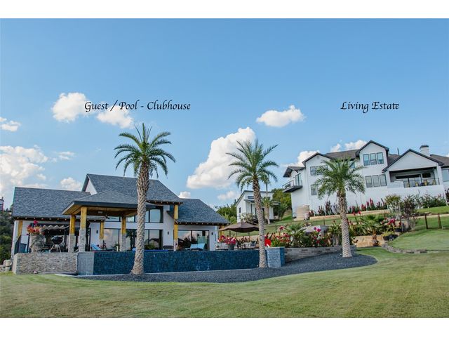 OWNER FINANCING AVAILABLE AT 4.89% RATE, MIN. $1.750 MIL. DOWN, INQUIRE FOR TERMS. Tropical Paradise Home with Panoramic Views! Parties. Family gatherings. Holidays. Events. Everyday living that’s anything but every day…With 4,000 sq.ft. in the main house, another 2,100 sq.ft. in the Guest/Clubhouse, a resort-style pool that puts most resorts to shame, nearly 1.5 acres of luxuriously landscaped tropical privacy & panoramic Hill Country views in every direction, the most ordinary moments become extraordinary at Little La Jolla … The Modern Farmhouse-styled main house offers open floorplan living, 5 spacious bedrooms (including two elegant primary suites with a steam sauna whirlpool tub with wall jets spray), 4½ baths, a hidden oversized appliance pantry and a true, big-screen home theatre with high-fidelity sound for movies and big games. Love to entertain? … Chefs can work their magic in the Clubhouse gourmet kitchen with an oversized island and Thermador appliances, including a built-in, recessed refrigerator, double ovens, double dishwashers, and a commercial sink…The wraparound bar seats 9…Guests will linger in the massive infinity-edge pool with its beach entry, a hot tub that holds 14, swim-up bar, 3-sided rain grotto, indoor/outdoor Sonos sound system and fully-equipped, sunken grilling cabana, complete with Alfresco gas grill with rotisserie, Green Egg, mini freezer and icemaker, surrounded by two patios, a beautiful ¾-acre fenced lawn great for fun and games for children and pets…Plus majestic palm trees and color-rich bougainvillea, with the added convenience of 3 separate parking areas for your guests…Custom-designed and finished in 2019…Separate she-shed with porch swing completed in 2020. Zoned R-6 rural, affording you certain freedoms you will appreciate. Imagine hosting weddings, bachelorette parties, family reunions, big anniversaries and very special birthdays. Or perhaps you’d prefer to keep it your own private Lakeway retreat.