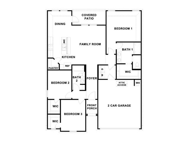 UNDER CONSTRUCTION - EST COMPLETION IN JAN. The Bellvue is a single-story home that offers 1,455 square feet of living space, a two-car garage, three bedrooms and two bathrooms. As you enter the foyer, you’ll pass the two spare bedrooms, both featuring walk-in closets, and the second bathroom. Next, you’ll enter the spacious family room, dining nook, and kitchen that are filled with natural lighting from the covered patio out back. The kitchen features a large panty, a kitchen island perfect for entertaining, quartz countertops and stainless-steel appliances throughout. Just off the family room is the main bedroom, bedroom 1, which features a large bathroom with double sinks and a large walk-in closet. This home includes full yard irrigation and sod, as well as our HOME IS CONNECTED base package which includes the Alexa Voice control, Front Doorbell, Front Door Deadbolt Lock, Home Hub, Light Switch, and Thermostat.