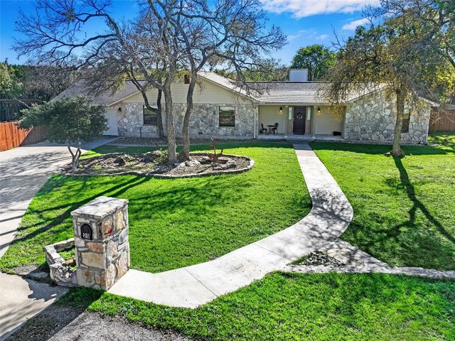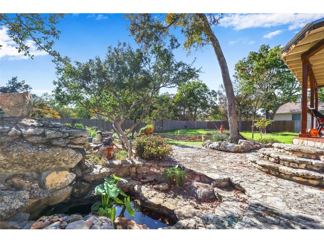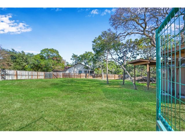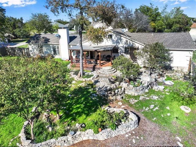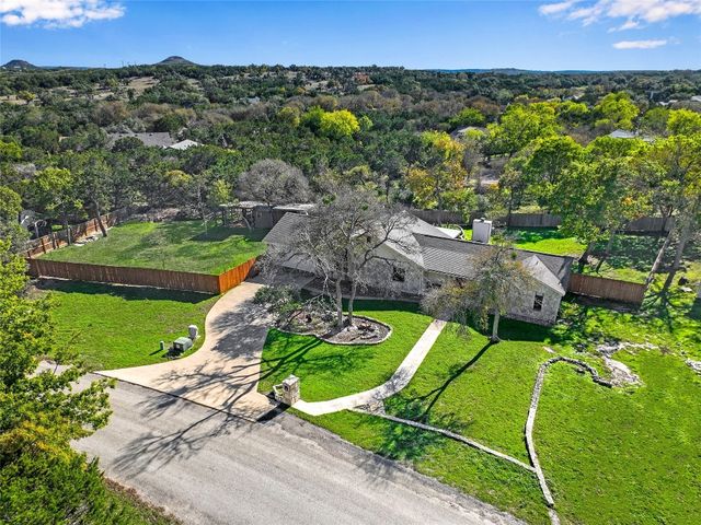 An absolute Texas Hill Country dream come true! Plush green panoramic views all around. It is an incomparable little gem on a very private road. The space behind the house gives this property additional privacy. You have over a half-acre lot! Your purchase includes two lots! Your living room is bright and airy, with many windows and high ceilings. The focal point of this space is the stunning river rock fireplace and accent wall. NO CARPET! Your kitchen is perfect for your resident chef. The kitchen features a stunning butcher block island, a tile backsplash, white cabinetry, a smooth cooktop stove, & updated SS appliances. Your breakfast area has lovely views of the backyard. Your laundry room features ample storage space. One of your bedrooms is currently used as an office and has a walk-in closet. Your secondary bathroom features an extended double vanity and a tub/shower combo. Your third bedroom is spacious, with a ceiling fan, a walk-in closet, and high ceilings. The primary bedroom is spacious and serene. You'll love recharging in this space! Your ensuite features an extended double vanity and a large walk-in shower. One of the many outstanding features of this property is the patio and backyard. When it's time to relax, venture to the spacious backyard and covered patio that offers a beautiful place to host a BBQ, admire the stars, and sip on your favorite beverage as you listen to the birds chirp. Or listen to the soothing sounds of your custom rock work with a pond and waterfall. You also have an expansive 2nd lot with storage and two carports. Where Hill Country sunsets span for miles of panoramic views. Soak in the views or sit on the large covered back porch while you drink your morning coffee. A short drive to Wimberley for shopping and great restaurants. Blue Hole Reginal Park and Jacob's Well. LOW TAX RATE!