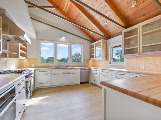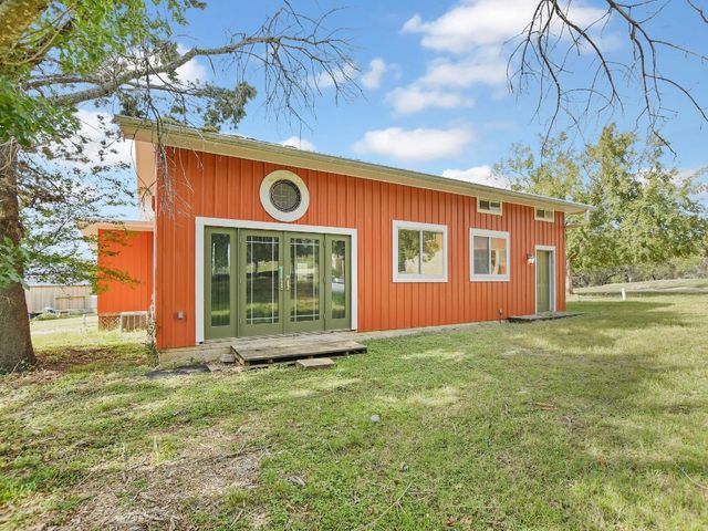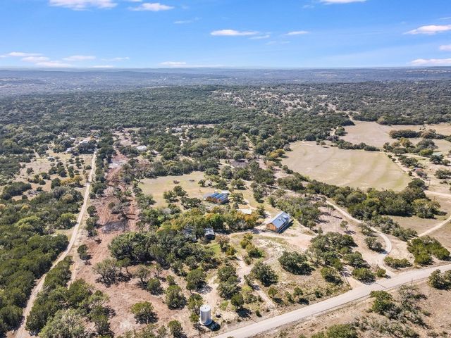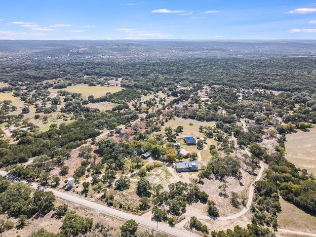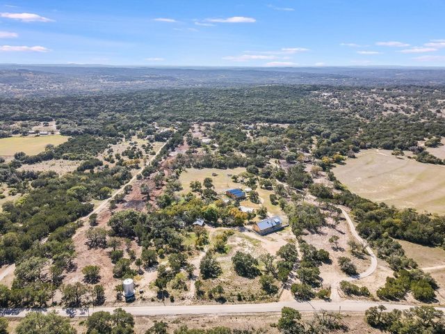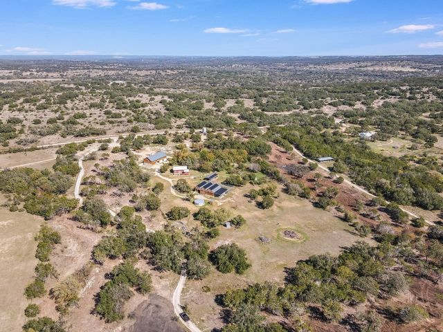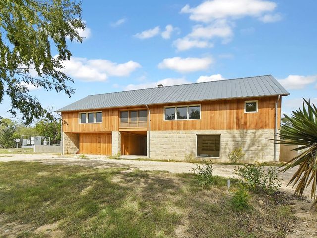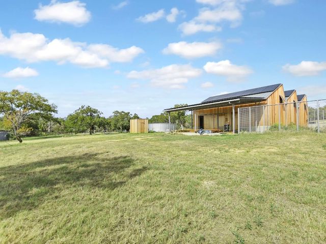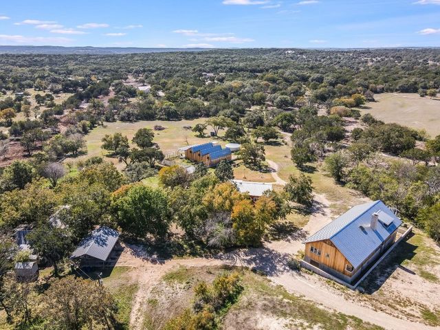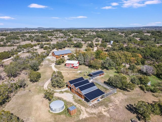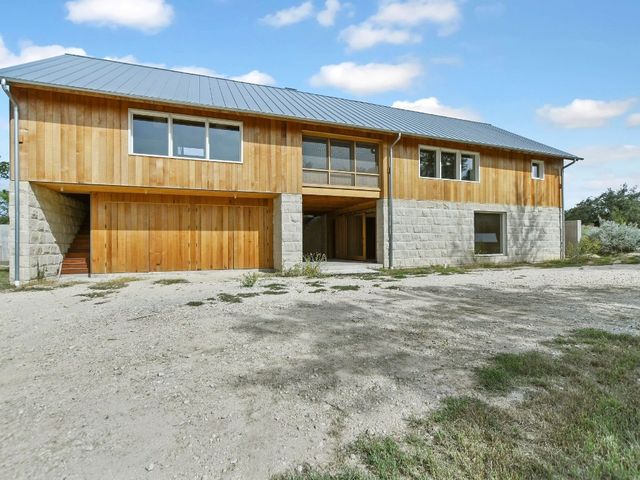 Private, sustainable, and unique are all words that describe this Texas Hill Country property located 45 minutes west of Austin on 9 acres. Three new construction includes an artist's studio with 3 bedrooms and 3 baths and beautiful gourmet kitchen plus a screened porch with fireplace that provides the perfect space for dining al fresco. The property is solar powered by 144 solar panels and 10 Tesla Power Wall batteries. Two water systems provide abundant water. The rain water collection system has a 30,000 gallon storage tank and is primarily for the residence. The well has a 40,000 gallon storage tank and is primarily for irrigation. Both storage tanks have a 4 inch valve compatible with local fire departments. Water is filtered and treated with UV light. The state of the art chicken coop has its own rain water collection system with filtration and UV treatment system and provides the perfect setting for fresh eggs.. There is also storage for eggs and a sink for washing eggs. Built with clear grain cedar siding and a standing seam metal roof, the hen house has everything a chicken could ask. A fenced garden space is adjacent. The huge workshop designed for ventilation and light with large skylights and high ceilings. All new structures designed by nationally know architect, Arthur Anderson. The "red house" has a basic kitchen and one bedroom and one bath. The original farmhouse is still on the property. Plenty of room on this 9 acres to add the house of your dreams. Truly a special property.