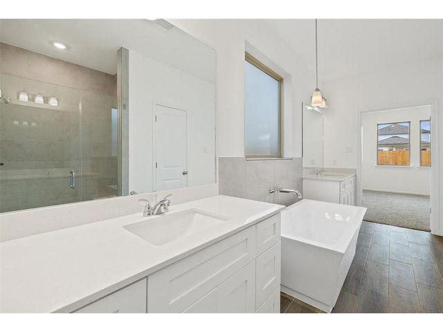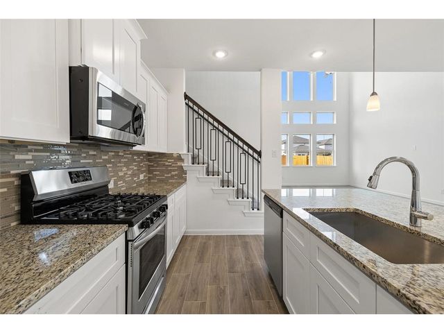 Call the Saratoga Homes of Austin sales number for showings. This brand new home by Saratoga Homes is in the highly sought-after Master Planned Morningstar Community neighborhood in Georgetown, Texas. This popular floorplan boasts a spacious open-concept design perfect for modern living. The home features upgrades galore, including high-end finishes, gorgeous flooring, front and rear landscaping and irrigation, recessed lighting, and elegant fixtures that create a luxurious and welcoming atmosphere. The Master Planned Morningstar Community offers resort-style living, 1.5 miles of hike and bike trails, a sparkling swimming pool, a community center, and various resident events throughout the year. Whether looking for an active lifestyle or a peaceful retreat, the Master Planned Morningstar Community has something for everyone.