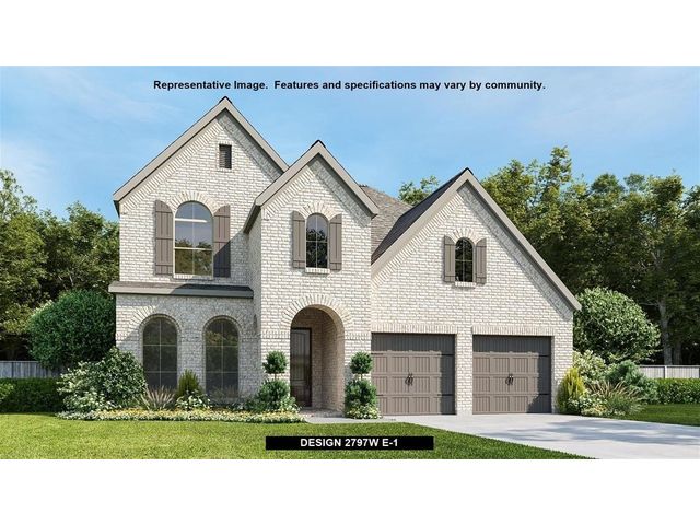 Home office with French doors and formal dining room set at two-story entry. Kitchen and morning area open to two-story family room with wall of windows. Kitchen features corner walk-in pantry and generous island with built-in seating space. First-floor primary suite. Dual vanity, garden tub, separate glass-enclosed shower and large walk-in closet in primary bath. A second bedroom is downstairs. Upstairs features a game room and two secondary bedrooms. Covered backyard patio. Mud room off two-car garage.