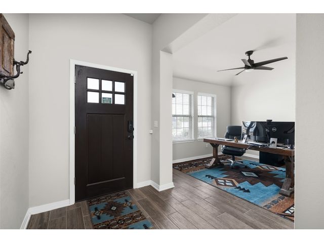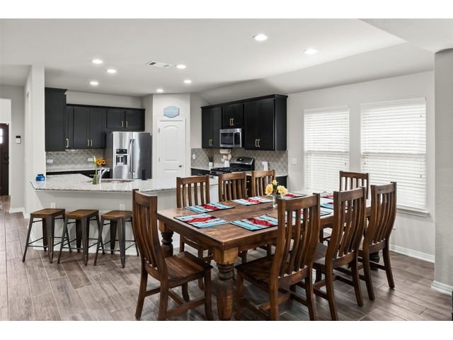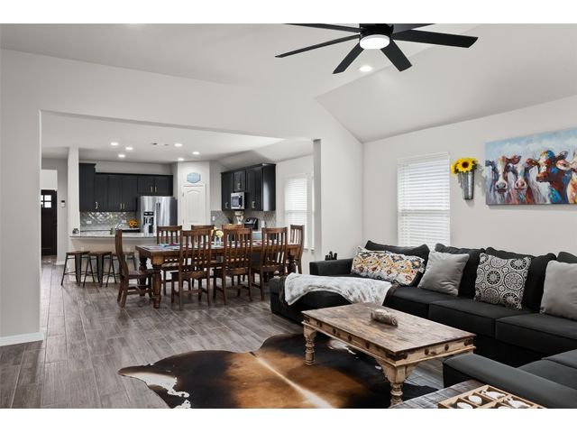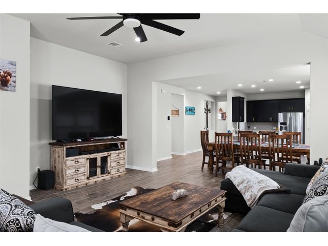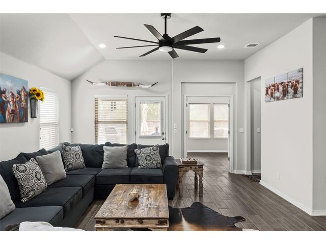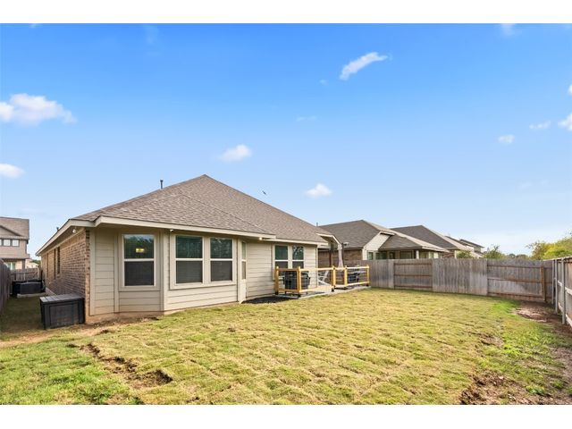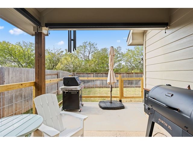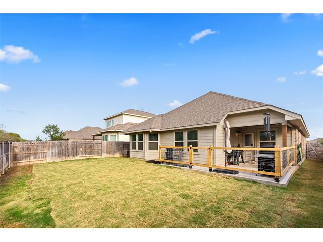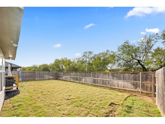 The large single story layout with office and flex space make this Blanco Vista home very unique! This meticulously crafted residence, a mere two years old, is situated in the master-planned Blanco Vista community, offering the perfect blend of modern living and serene surroundings. As you step through the front door of this 2204-square-foot gem, you'll be immediately captivated by the wood-look tile that graces the open-concept living space. This single-story haven is designed with your comfort in mind, featuring 3 bedrooms, 2 bathrooms, and two versatile spaces—an inviting office and a flex room—that cater to your unique lifestyle needs. The heart of the home lies in the expansive kitchen, where culinary aspirations come to life. With its generous size and contemporary design, this kitchen is a chef's delight, perfect for entertaining or crafting family meals. The open layout creates a seamless connection to the living areas, enhancing the sense of spaciousness. Your private sanctuary awaits in the generously sized primary bedroom, offering plenty of room for a cozy sitting area. As you step outside, discover the enchanting covered and extended back patio, a perfect spot for al fresco dining or simply unwinding. The true highlight, however, is the unparalleled privacy afforded by having no rear neighbors and a backdrop of mature trees, providing a tranquil retreat right in your backyard. Blanco Vista is not just a neighborhood; it's a lifestyle. Enjoy the perks of a master-planned community, including an on-site elementary school, two pools—one junior Olympic-sized and one designed for the little ones—lush parks, playgrounds, and miles of hike and bike trails. Embrace the serenity of living close to the Blanco River, where outdoor adventures await. Don't miss the opportunity to make this stunning residence your own!