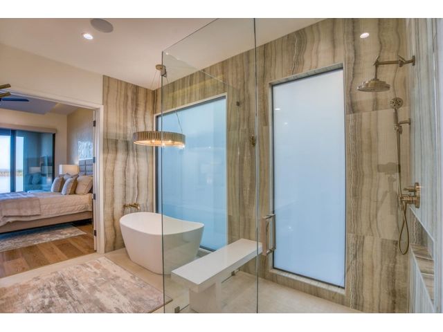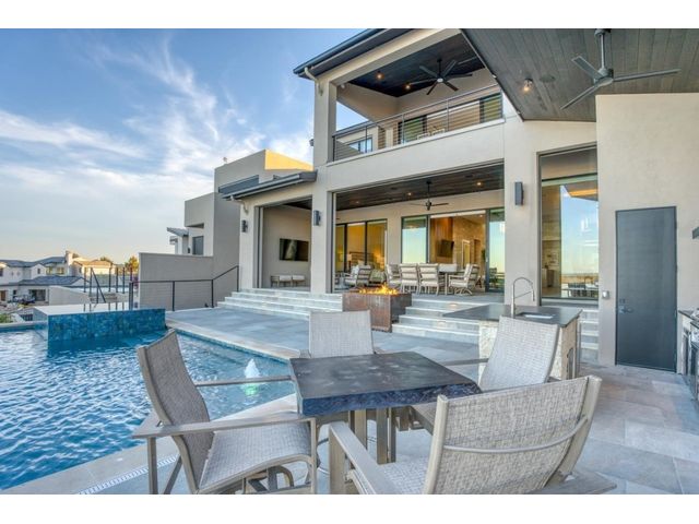 Privacy, Massive Water Views and a wonderful custom, contemporary home with so many upgrades there's not room to mention all of them here. A list will be provided to interested buyers. This incredibly tastefully designed home has a Casita with private access and also from inside the home.This home was substantially upgraded with only the finest materials used throughout. Level 6 Taj Mahal granite throughout the main living area with major waterfall granite island in the beautifully designed kitchen. Double Sub Zero Fridge, Wolf 6-burner cooktop, double ovens and hidden pantry/utility room. Control 4 electronics system with cell phone access for all features including lighting, pool and alarm system from anywhere in the country. Complete audio system. Outdoor patios up and down with electronic privacy shades. Beautiful pool, spa and totally equipped outdoor kitchen and a gas fire pit. Elegant designer furnishings throughout from John Williams Interiors included with strong offer. Purchase conveys an equity membership to Escondido Country Club. Ask agent for details.