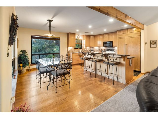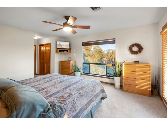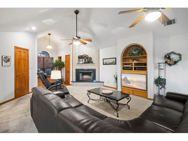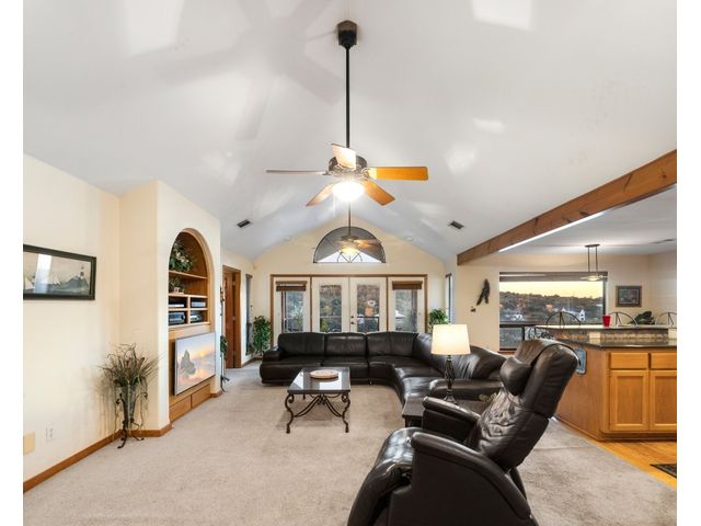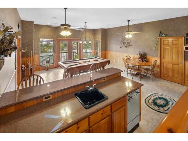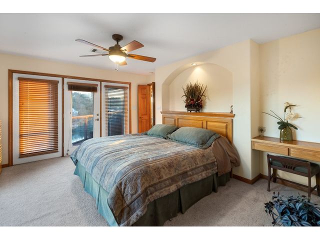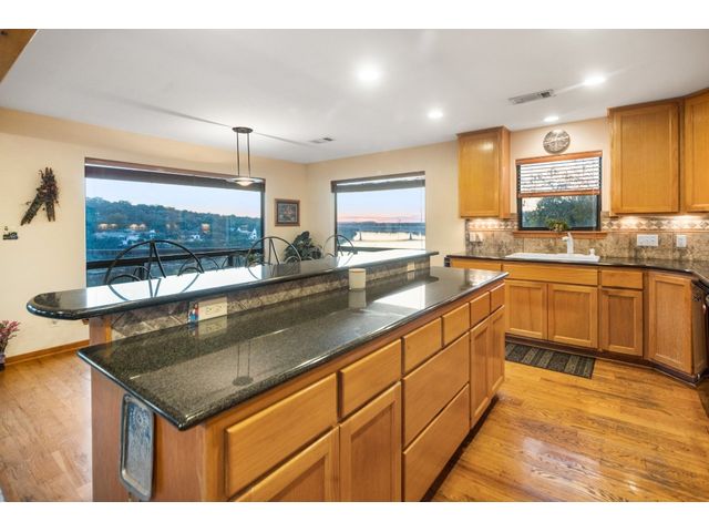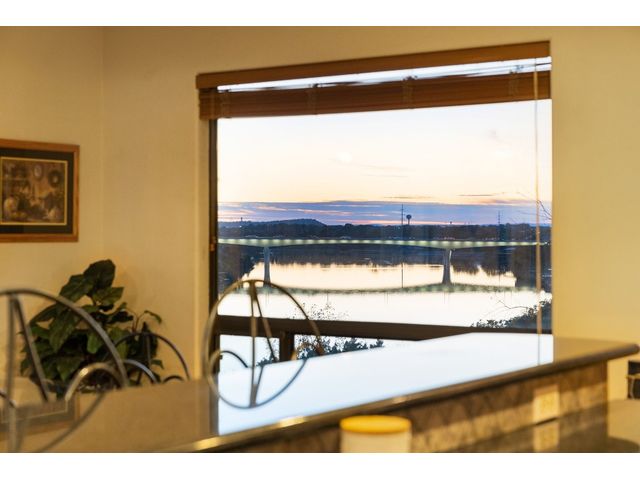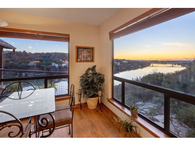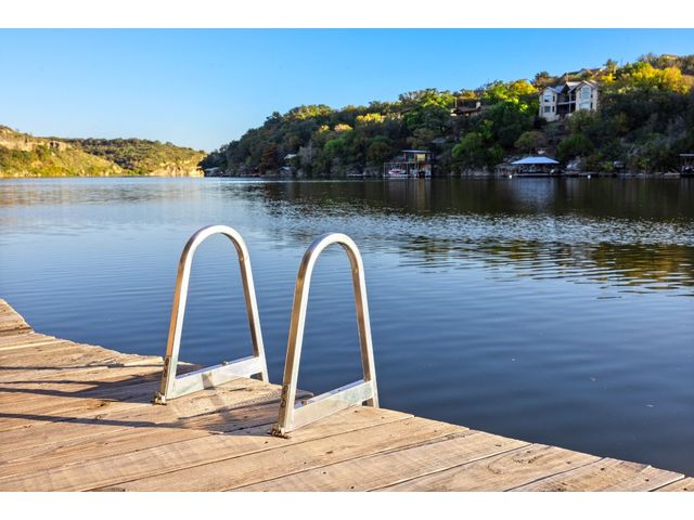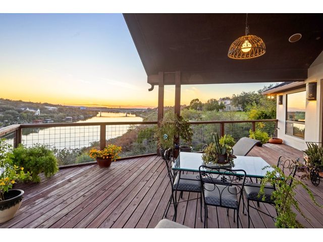 Enjoy the sunrise and sunsets in this 4 bedroom/2.5 bathroom custom built home with dual living spaces to host the entire family! Panoramic views provide a front-row seat to the mesmerizing beauty of Lake Marble Falls, showcasing the Marble Falls bridge to the west and privately owned cliffs to the east. The top floor entrance brings you to an open-concept and spacious living room with a vaulted ceiling, dining area, breakfast bar, and kitchen featuring granite countertops and hardwood floors. The primary bedroom is just off of the living room and features an en suite bathroom for added privacy and convenience, and two closets. From the main living area, step out onto the 240 sq. foot balcony overlooking the water. You will also find the half-bathroom on the main level. The lower level is dedicated to entertainment, featuring a large open room, with a wet bar, icemaker, two bedrooms with closets, and a flex room/office/4th bedroom. The downstairs patio, complete with a hot tub, gas fire pit, and stone privacy wall, provides an additional outdoor retreat and access to the lake and outdoor amenities. Mature trees provide added privacy and shade. Swim, fish, or boat directly from your property. The driveway is complete with abundant parking spaces, a two car-carport, and two-car garage with its own view of the lake - which can be converted to additional living space. The property includes a dog run and multiple areas for expansion. The possibilities are endless with this investment opportunity! Short-term rental is allowed. Shopping and dining districts are only a few blocks away!