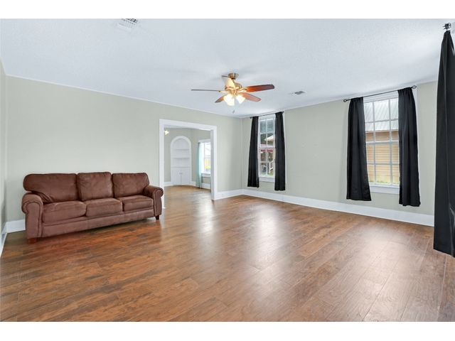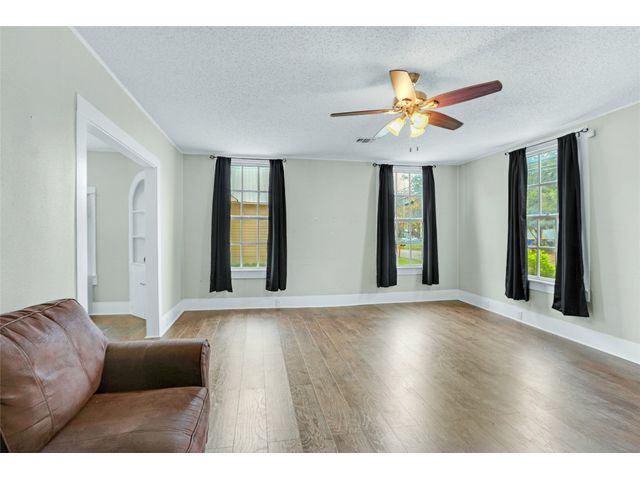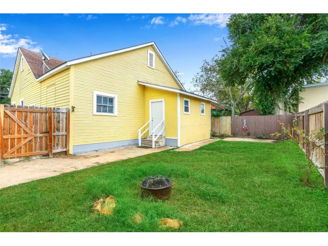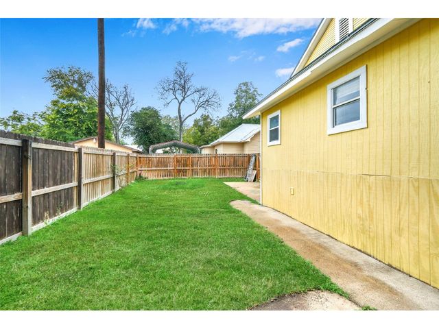 You will absolutely fall in love with this Mid-Century Modern Craftsman's home in Gonzalez. This unique property has so much old-world charm from the overhanging eaves, decorative window shutters, front porch, and columns. Your front porch is perfect for a morning coffee or a glass of wine after work. The updated home features a spacious, bright, airy living space with many windows. NO CARPET! Your kitchen features stainless steel appliances, a peninsula island, and abundant counter space. Your dining area has thoughtful built-in shelves for your treasures. You have a spacious laundry area with a cabinet for storage. Your secondary bathroom features an extended single vanity and a tub/shower combo. Your second bedroom has a ceiling fan and natural light flowing through the room. The Primary bedroom has his/her master closets. The ensuite has a large walk-in shower and a single extended vanity. When it is time to relax, venture out to the back patio. Your backyard is spacious and ready for your finishing touches. There are many things to do in Gonzales, from exploring the Texas History Museum, paddling the Guadalupe River, & playing a round of golf at the Independence Golf Course. A short drive to the Confederate Square, adorable shops, and a short drive to the Guadalupe River. Just over an hour away from Austin and San Antonio makes this an excellent weekend getaway adventure.