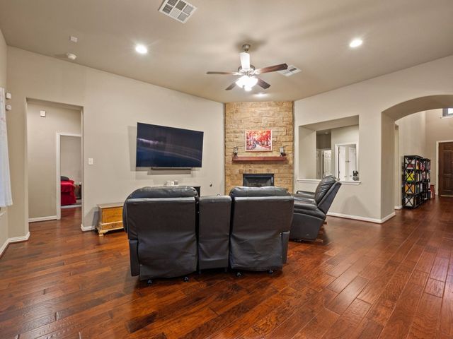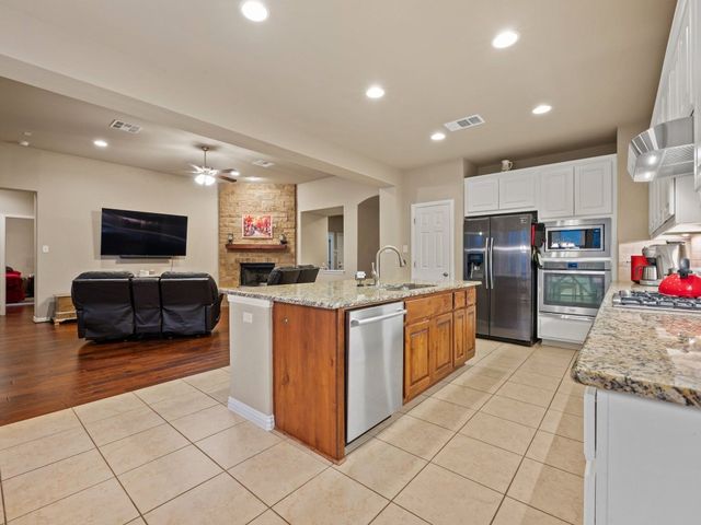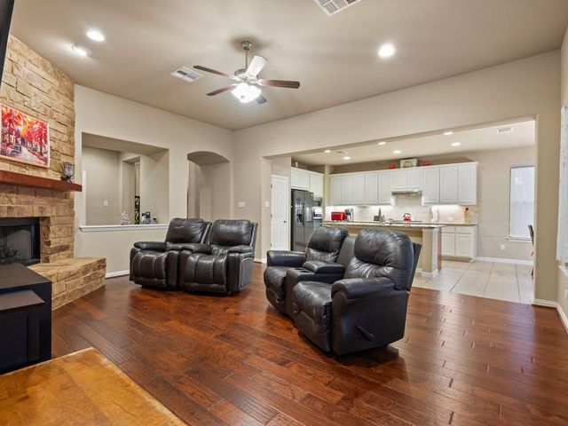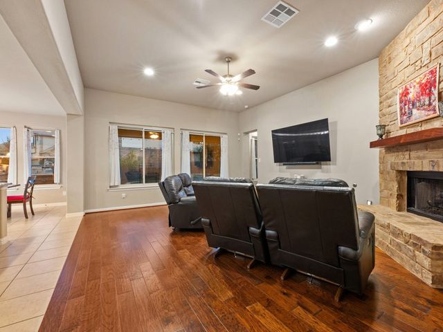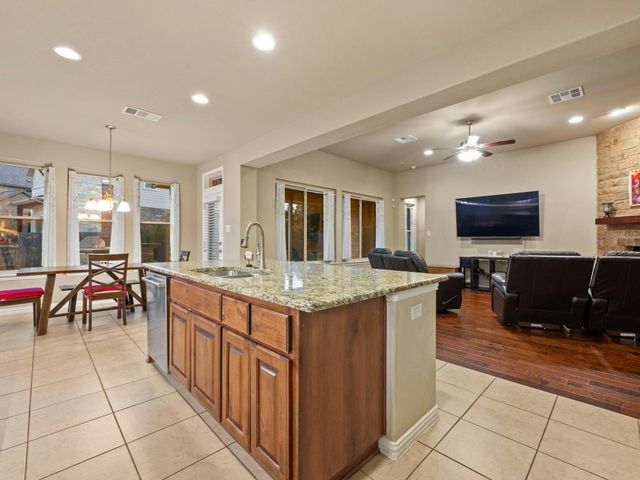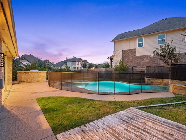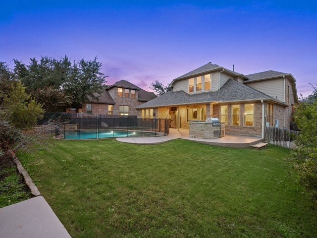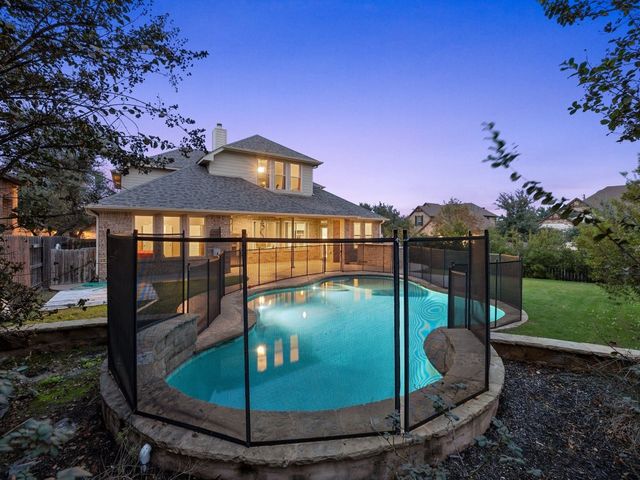 **Contact Agent 2 with questions**Step into the ideal entertainer's retreat in the sought-after Whitestone Oaks community. This inviting home, nestled on a corner lot within a peaceful cul-de-sac, is designed for those who love to host gatherings without compromising on comfort and practicality. Outdoors, a spacious covered patio with an outdoor grill sets the stage for casual get-togethers, overlooking an inviting in-ground pool. The heated pool boasts a tanning ledge and a charming waterfall, ensuring year-round enjoyment. The fully fenced backyard provides a private space for relaxation and socializing with friends and family. Inside, discover a well-thought-out layout featuring 4 bedrooms, 3 full bathrooms, a dedicated office, and versatile living spaces, including a game room. As you enter, be greeted by high ceilings in the entryway and warm wood flooring, creating an atmosphere that feels like home. The heart of the home is the open concept living room, kitchen, and breakfast area, providing a welcoming space for socializing. The living room exudes comfort with a floor-to-ceiling stone fireplace, while the kitchen offers practical features such as a spacious center island with a breakfast bar, granite countertops, dual-colored cabinetry, tile backsplash, and stainless appliances. The primary bedroom, strategically located on the main floor for privacy, boasts high ceilings and a gorgeous ensuite bath. Indulge in luxury with separate vanities, a soaking tub, a large walk-in shower with a rainfall shower head, and a generous walk-in closet. An additional bedroom and full bathroom on the main floor add convenience. Upstairs, the large game room serves as an additional living space, complimented by 2 guest bedrooms and another full bathroom. With an amazing location close to all the action in Cedar Park and easy access to 183A leading you into Austin, this residence is truly worth the wait.