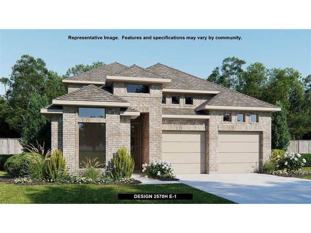 Entry with 11-foot ceiling framed by home office with French doors and utility room. Family room with wall of windows extends to kitchen and dining area. Island kitchen offers built-in seating space and a corner walk-in pantry. Primary suite with a wall of windows. Primary bath features a French door entry, garden tub, separate glass enclosed shower, dual vanities and a generous walk-in closet. Second floor boasts a large game room, secondary bedrooms with walk-in closets and a full bathroom with dual sinks. Covered backyard patio. Two-car garage.