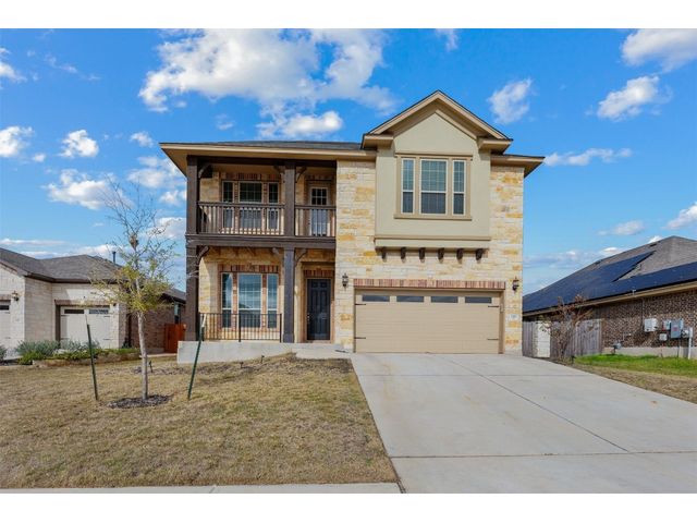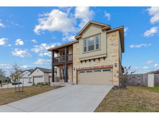 An absolutely lovely home on a pool sized lot with a sprinkler system. Primary bedroom on 1st floor along with a Home Office, which could be the 4th bedroom. 2 Bedrooms, bathroom and Loft with exterior Balcony located on the 2nd floor. An open floor plan with a large Dining area, Family Room and Kitchen which includes granite counters, center island, stainless appliances and a pantry. The 2 car garage has a water softener loop and overhead storage. You’ll find a covered front porch, a 2nd story porch accessible from the Loft to enjoy the lovely view, and a covered back patio. Enjoy the fabulous amenities the Colony has to offer including a Jr. Olympic size pool, fitness center, park, dog park, playground, extensive walking trails, tennis, pickle ball, basketball court. Located west of Bastrop offering a convenient drive to Austin Bergstrom Airport, plenty of parks, shopping and restaurants.