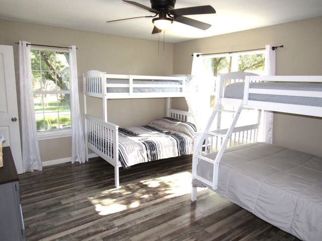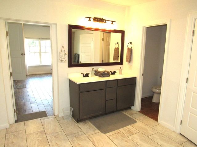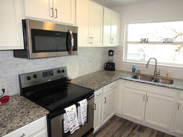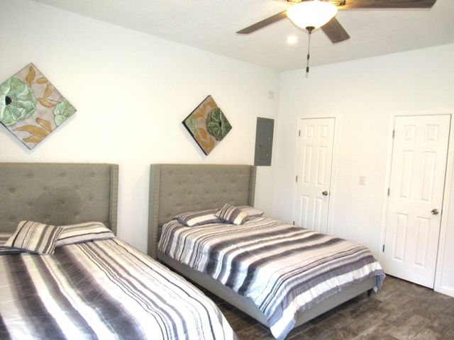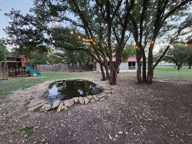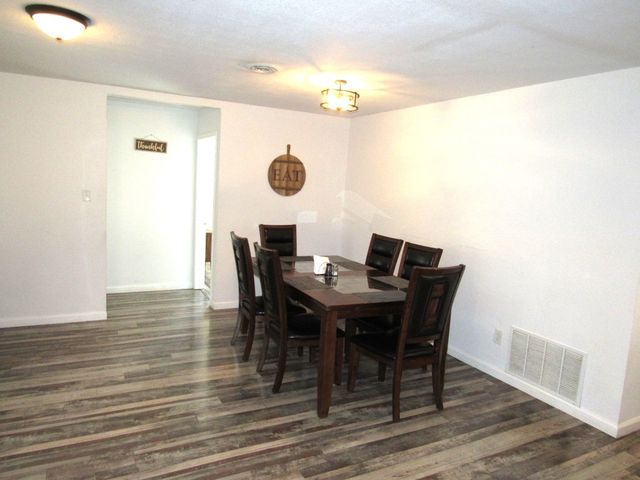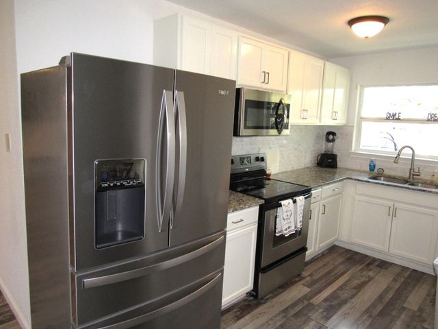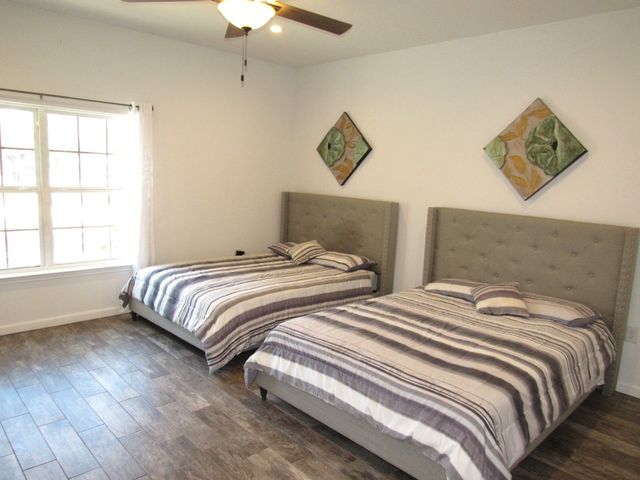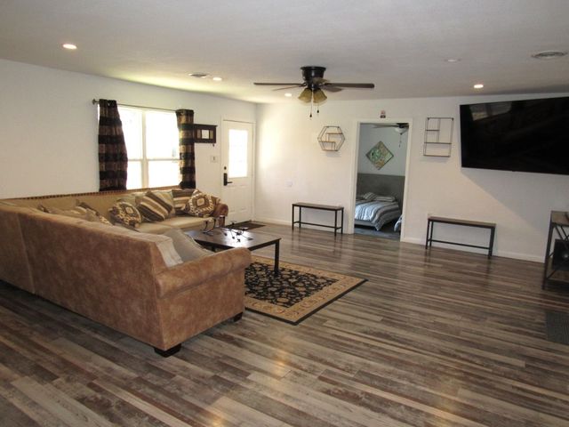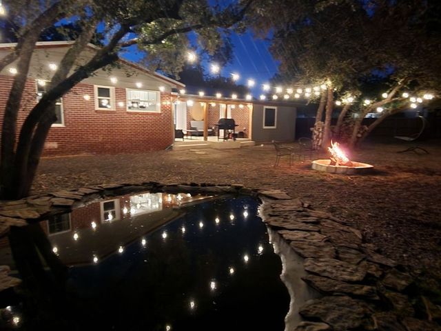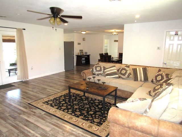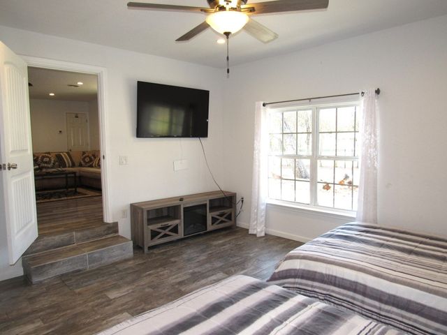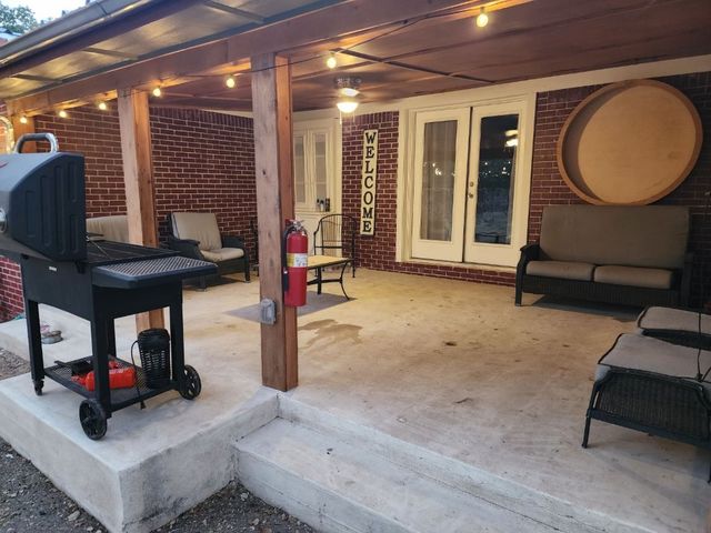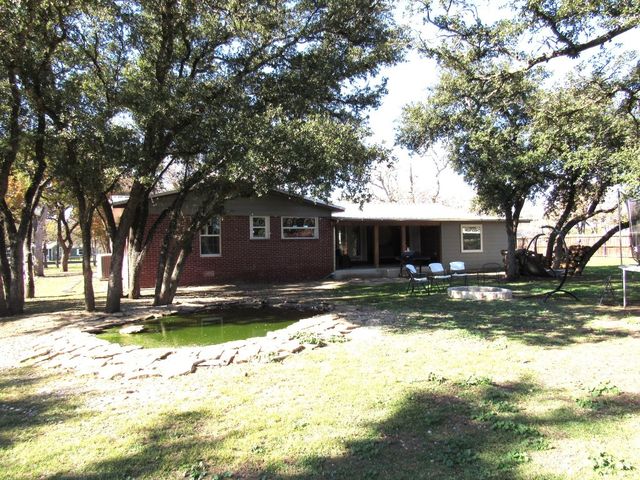Currently used as Airbnb $$$$. This brick 3 bedroom 2.5 bath home is move-in ready plus has 1,500 sqft guest home that need renovation. Main house is just over 2,000 sqft. Property offers almost an acre of space and is outside the city limits, includes barn, metal roof on both homes and barn, laminate flooring throughout, upgraded vinyl windows, large living room with fan, double doors to covered back porch, formal dinning, granite countertops in kitchen, smooth top electric range, microwave, stainless-steal refrigerator, roomy Primary suite with LARGE tiled roll-in shower, double vanity and walk thru closet. Split floor plan with each guest bedroom having its own bathroom plus walk-in closets. Enjoy time on your covered back porch over-looking the tree cover lot with small pond, play set and much more. Call today!