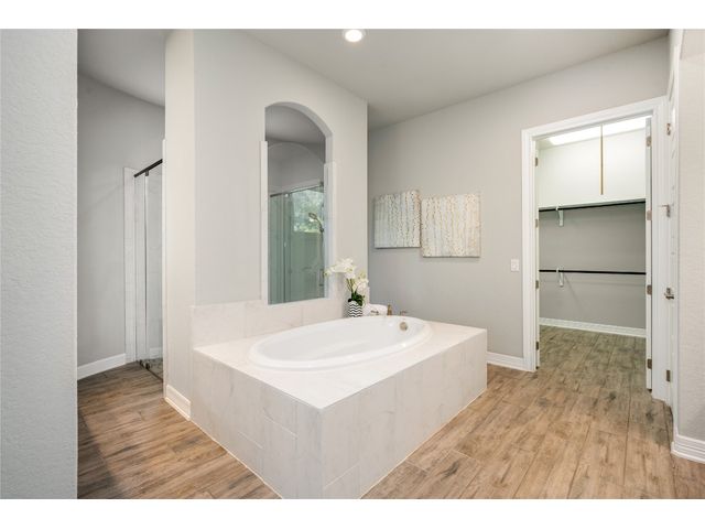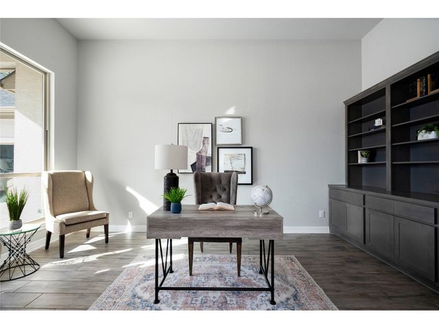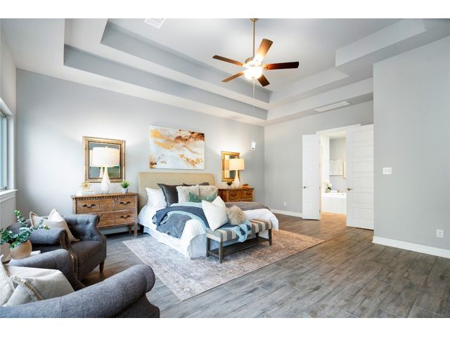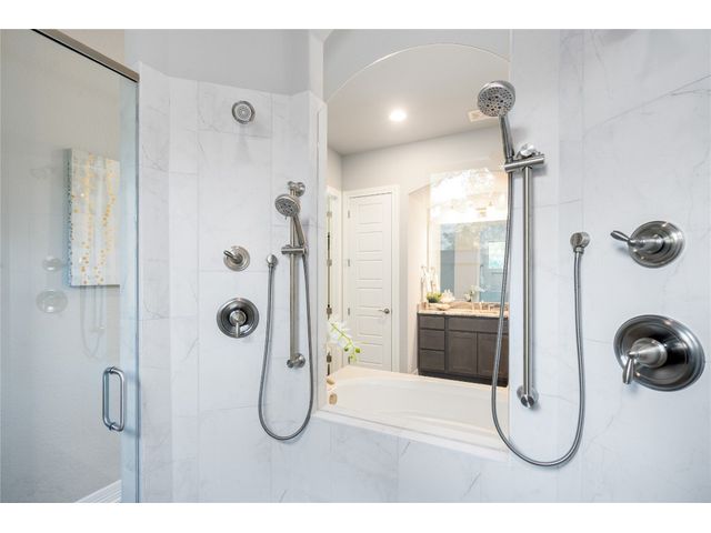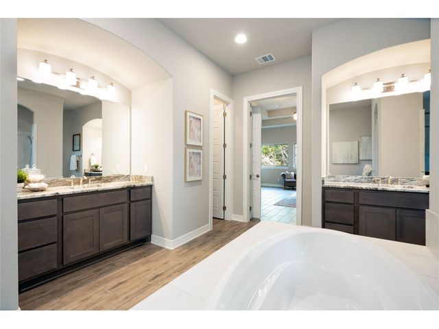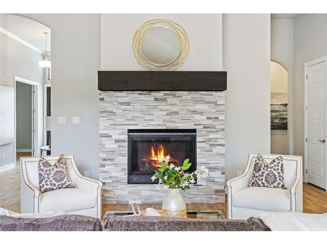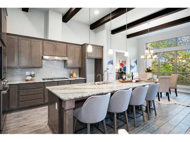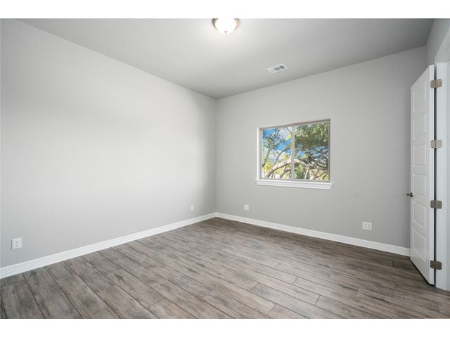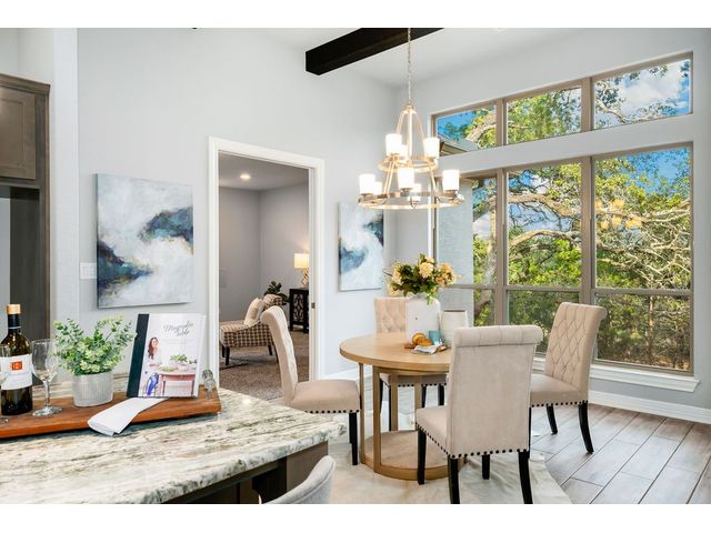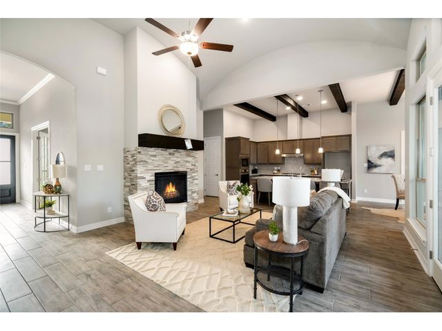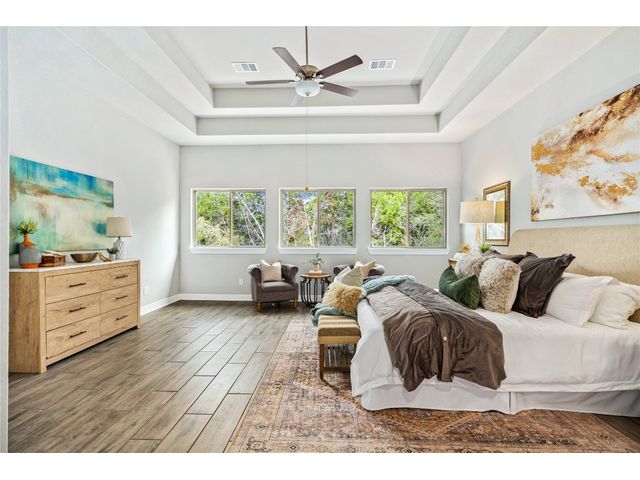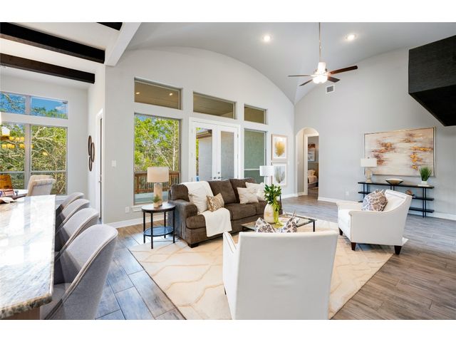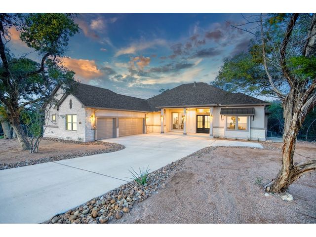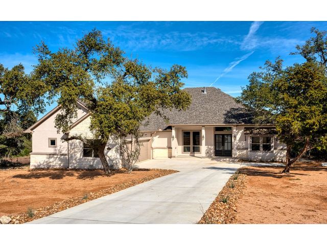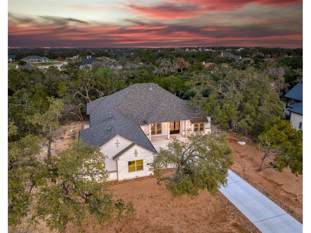 Nestled on an acre-plus lot in the prestigious Vintage Oaks community, this brand-new custom home offers a perfect blend of luxury and tranquility. Spanning more than 3,400 square feet, this residence provides ample space for relaxation and entertainment. Boasting 3 bedrooms and 4 bathrooms, along with an office, a media room wired for full Dolby-Atmos sound, and versatile flex spaces, this home caters to all your needs. The heart of the home is the expansive open-concept living and kitchen area, featuring natural gas cooking, a cozy fireplace, and a dining space that’s perfect for gathering. Large windows flood the main living areas with natural light, offering picturesque views of your wooded backyard. Whether you choose to leave it as a natural retreat or transform it into your personal oasis, the grounds are yours to mold into perfect setting for enjoyment and relaxation. Designed with accessibility and comfort in mind, the master suite includes a garden-tub and a shower area featuring two roll-in ADA compliant entrances. The second full bathroom also includes a walk/roll-in entrance for added convenience. Wake up each morning to the serene views of majestic oaks from the owner’s suite. The owner’s bathroom is your private spa retreat, complete with a luxurious garden tub, a spacious walk-in shower, dual vanities, and an expansive walk-in closet. Designed with both convenience and conservation in mind, this home includes a three-car garage and drought-tolerant landscaping. The resort-style amenities of the Vintage Oaks Community ,includes access to a large pool, children’s pool, lazy river, sports fields, and miles of scenic trails, make 1218 Game Trail not just a home, but a lifestyle. Here, you’ll enjoy postcard-perfect sunrises and sunsets amidst the natural beauty of the Texas Hill Country.