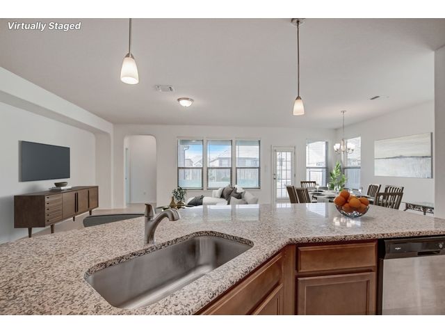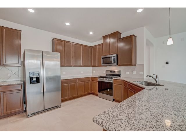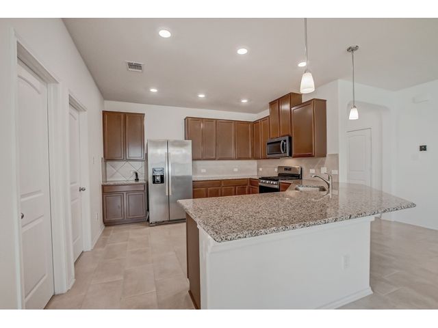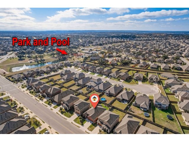 Beautiful recently built single-story home on the edge of the Hill Country but conveniently located nearby city amenities! This east facing home still feels new and features a spacious kitchen overlooking the living and dining area. The excellent build quality is evident inside and out including hard tile flooring throughout, tall ceilings, rounded corners, hallway arches, media niche, a wall of windows overlooking the covered patio, all-brick exterior and an insulated and finished garage. The fantastic location is just a block away from a walking trail leading to the resort style amenity center featuring a pool with sun ledge, shaded children’s pool, splash pad, basketball court, playground and trails. Less than 10 minutes from Lake Travis, Metro Rail park-and-ride, HEB Center, Cedar Park Medical Center and so many restaurants and shopping centers along the 183 and 183A corridors.
