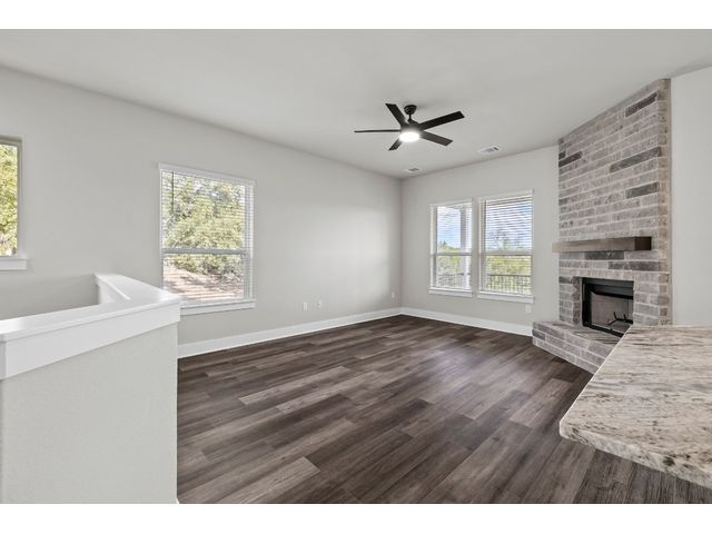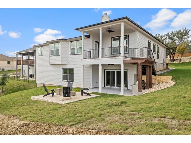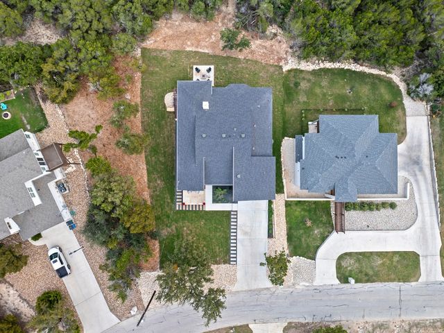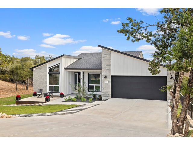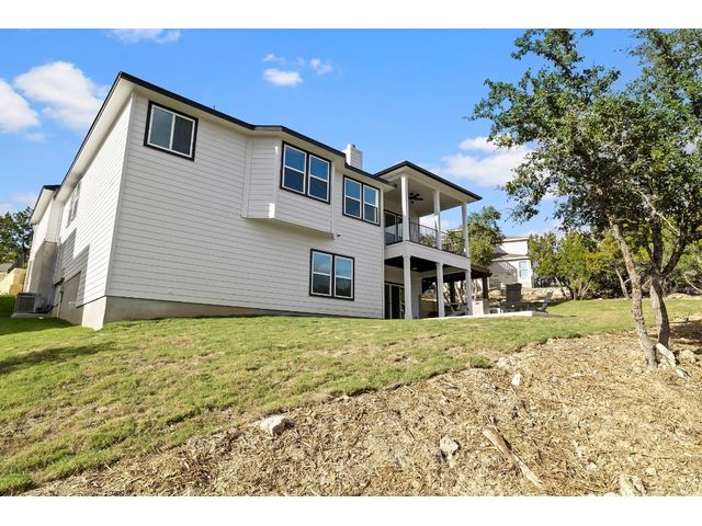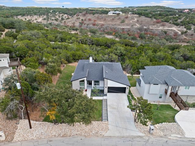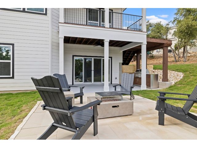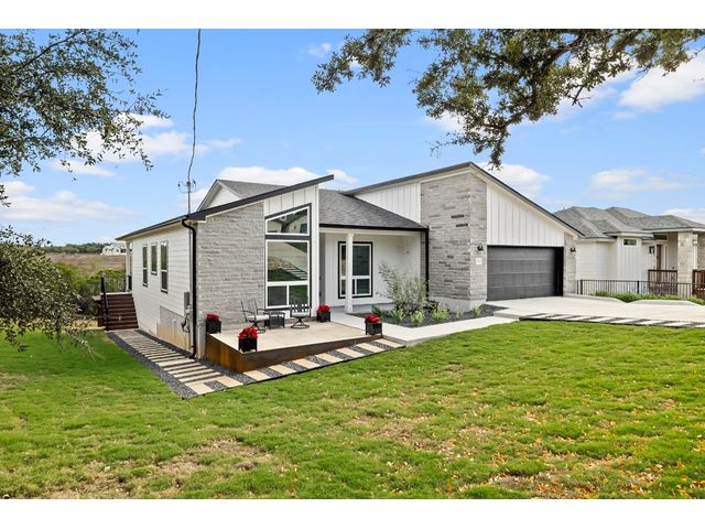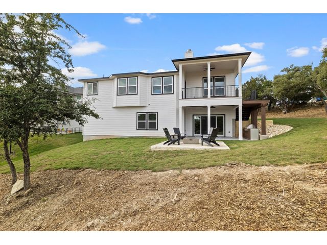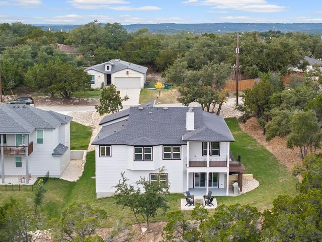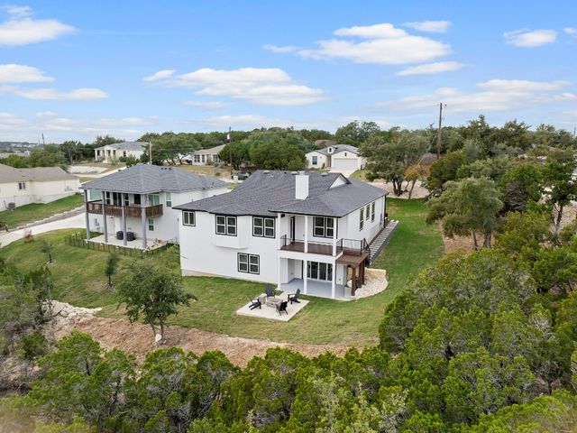 ** NEW PRICE + HILL COUNTRY VIEWS** Immerse yourself in the pinnacle of lakeside splendor with this unrivaled new construction gem, unveiling breathtaking panoramic hill country views! Encompassing a sprawling 3,330 sf, this palatial residence presents 5 bedrooms (or 4 beds + office) and 3 bathrooms. Revel in the luxurious open concept design, where a large kitchen adorned with quartzite countertops throughout becomes the epicenter of sophisticated living. The main level unveils a lavish master suite adorned with a wood-burning fireplace, epitomizing grandeur and warmth. Discover not one but two expansive living areas and meticulously appointed dining spaces, creating an atmosphere of refined sophistication. The lower level, a sanctuary of indulgence, reveals a guest room, bath, living room, and media room, adorned with a 75" TV, a 60" electric wall fireplace, and a chic beverage bar. Explore the alluring lakeside setting, where the front porch invites tranquility, and the rear unfolds an outdoor kitchen and firepit, creating a perfect stage for outdoor enjoyment. Every facet of this residence reflects meticulous craftsmanship, seamlessly integrating an open layout and sumptuous finishes. Set in a desirable lakeside community, this home offers an exquisite blend of relaxation and recreation, providing an idyllic haven for sophisticated living. Welcome to a life of lakeside luxury!