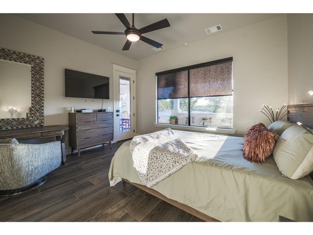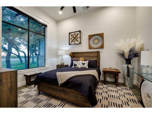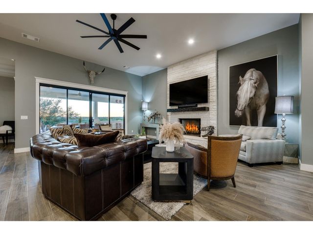 Spectacular Custom Built Luxury Home and Equestrian Ranch situated on 11.5 Acres on a cul-de-sac in Burnet’s gated 7 Creeks Ranch Community. The entire property is fully fenced-in with a custom gated entrance (approx. $100K investment). This very private gentleman's ranch is the perfect equestrian property with three horse paddocks (one with electricity & water) and serves as an operating ranch with two zebras and a zebra/donkey. Bring your horses! Custom built to perfection in 2020 by renowned local builder, Karl Hancock, this exquisite modern home provides 3 bedrooms each with luxury ensuite baths, a home office that could serve as a 4th BD, a three-car garage, and a breathtaking outdoor entertainer’s porch with unobstructed, panoramic hill country views. Enjoy the ultimate in outdoor cooking with a built-in Blaze grill, sink, beverage fridge, and Alfa One pizza oven. The stunning interior features soaring tall ceilings, tasteful wood-inspired tile plank flooring, recessed lighting, a gas log fireplace, and high-end designer finishes. Oversized windows and four-panel sliders maximize the incredible views of the magnificent natural surroundings. This deluxe home comes with all the desirable contemporary bells & whistles including a water softener, wine fridge, built-in SS appliances, oversized center island with thick-cut quartz countertops, and a chef’s quantity of timelessly elegant cabinetry. Energy security & saving with Solar Panels! 7 Creeks Ranch is a secluded, gated Hill Country community comprised of over 2,200 picturesque acres with ranch homes and minimal land use restrictions. Hyperfusion internet. Burnet ISD schools. Ag-exempt property with a low tax rate of 1.33! Just 10 miles from central Burnet, 23 miles to Marble Falls, and 30 miles to Leander. This is a fantastic opportunity to secure a magnificent move-in-ready luxury home & horse ranch on expansive acreage at this amazing price point. Take the 3D tour to see more and schedule a showing today!