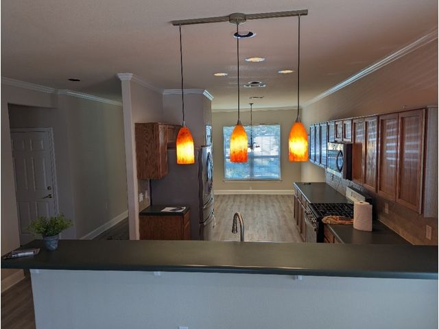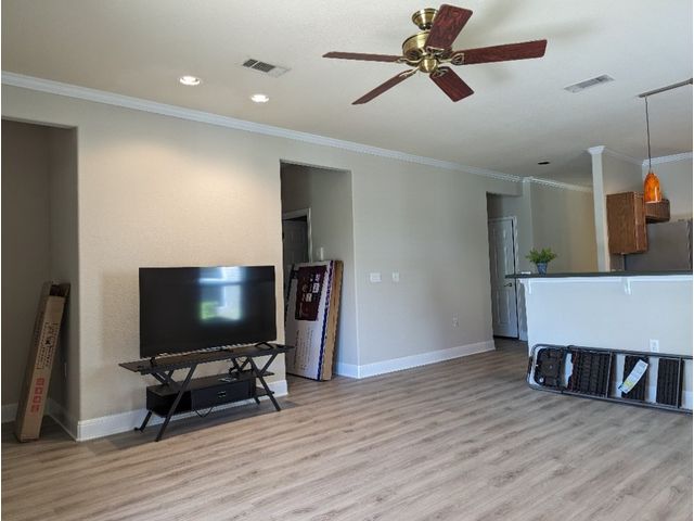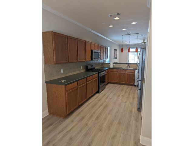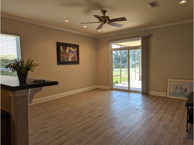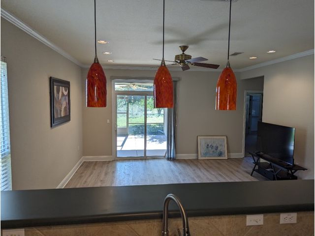 Three bedroom, two bathroom, new flooring throughout. Great greenbelt in back. 55+ community. HOA in place. Community convenient to all amenities and stores. Move-in ready. TV, wall pictures excluded. Price reduction.