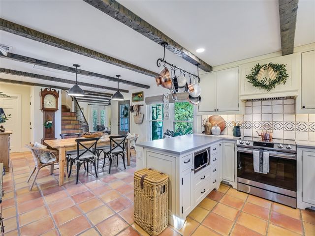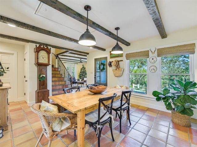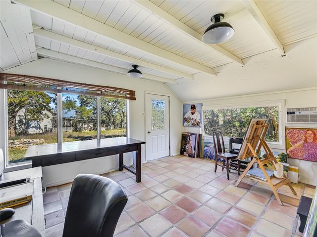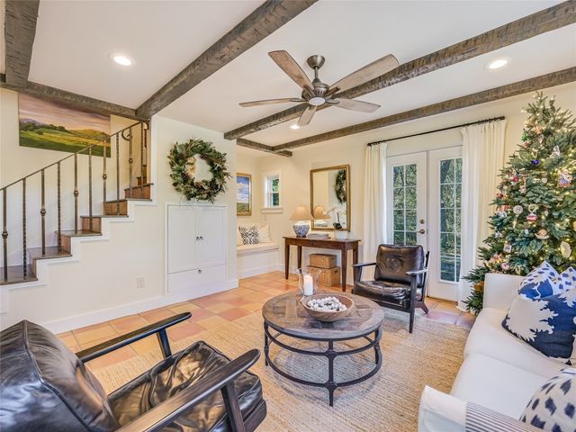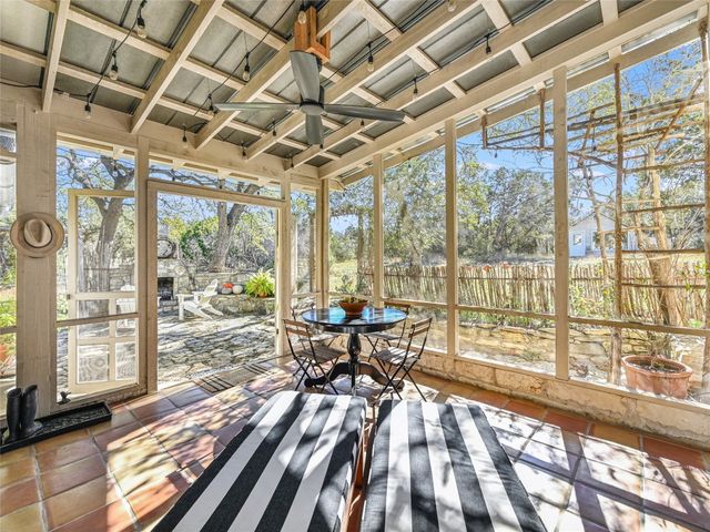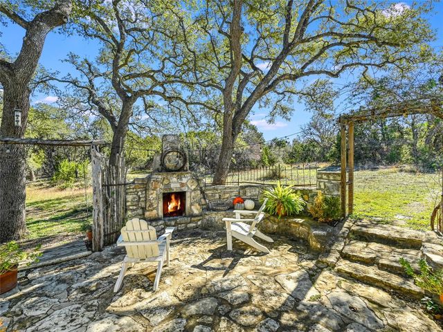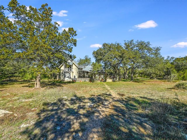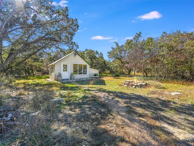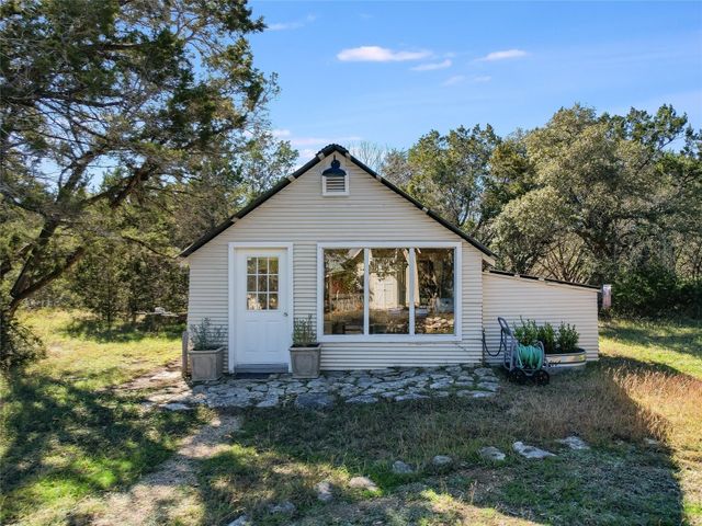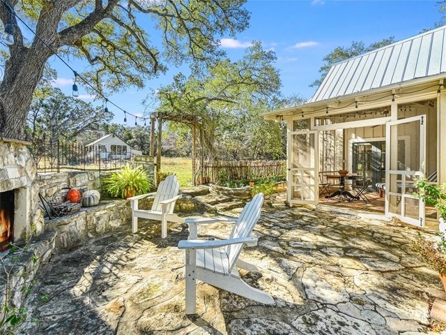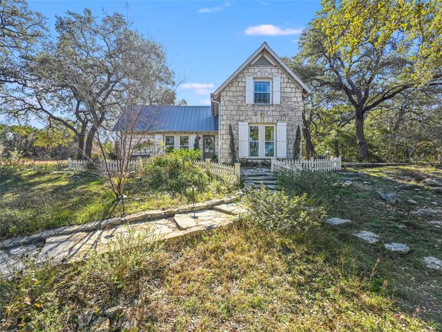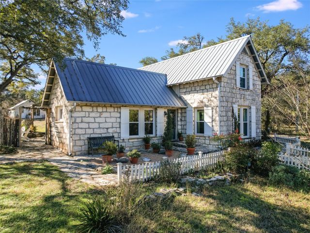 Welcome to your private sanctuary nestled on 6 acres of serene landscape. This property invites you to explore its enchanting features - from the picturesque meadow that greets you at the entry gate to the allure of the oak-filled surroundings. The main house encompassing 1,408 square feet, adorned with a timeless limestone façade, beckons you into a world of comfort and style. Step inside to discover a newly updated kitchen boasting solid counters and a designer backsplash, seamlessly connected to the dining and living areas. Within the living room, a cozy reading nook awaits, offering a perfect spot to unwind. This charming abode offers a convenient bedroom and bath downstairs, while upstairs unveils two additional bedrooms and a full bath. As you step onto the screened porch at the back, an inviting terrace complete with an outdoor fireplace invites you to savor evenings surrounded by nature's beauty. A short stroll away stands the versatile outbuilding, currently an art studio, poised to inspire creativity. Adjacent, a garden and greenhouse await a touch of care and attention, promising a flourishing oasis in time. Meandering to the newly constructed guest house, spanning 1,232 square feet, discover a haven of comfort and independence. A separate bedroom and bath, linked by a breezeway to the main guest house, offer privacy and convenience. The main guest house features another bedroom and one and a half baths, along with a thoughtfully designed kitchen open to a spacious living and dining area. Above a potential three-car garage, find a climate-controlled storage space and room for a small work area, accessible via its own driveway. Whether envisioning a vacation escape or a long-term retreat, the possibilities for this unique property are boundless. There's so much more to experience here than words can convey—schedule a viewing and immerse yourself in the charm and versatility of this exceptional estate.