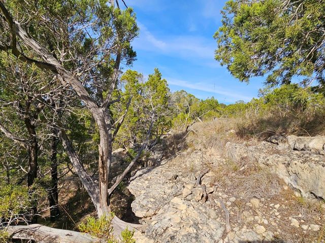 This 5.39 acre lot of hill country perfection offers the ultimate in privacy and several easy options for homesites with dramatic, expansive and unobstructed views to the west from elevations of 920’ to 1005’. TOPOGRAPHIC MAP WITH ALL OAK TREES MARKED in uploaded to photos and documents. The VIEW is heavily wooded hill country that spreads from the valley below to the ridge of distant hills to the west, and SUNSETS you must see to appreciate! Located midway between Jonestown/ Lago Vista and Marble Falls, it is just .9 miles from the Turkey Bend Recreation Area, 5.4 miles to Balcones Canyonlands National Wildlife Refuge, 10.8 like to Lowes Grocery Market or SLR Grocery, 11 miles to Hidden Falls Adventure Park, 18 miles to Marble Falls, and 53 minutes to Austin. Other points of interest nearby include Delaware Springs Golf Course, Longhorn Cavern State Park, Inks Lake State Park, Lake Buchanan, and of course, Lake Travis is just down the hill! This is undeveloped land. A well and septic system will be needed, as well as electricity provided by Pedernales Electric. Propane is permitted. Most of the lots along Shaw Road are several acres. Build your DREAM HOME in this DREAM LOCATION and enjoy the sunsets and hill country views, the proximity to the Colorado River and many recreational opportunities, all less than an hour from Austin!