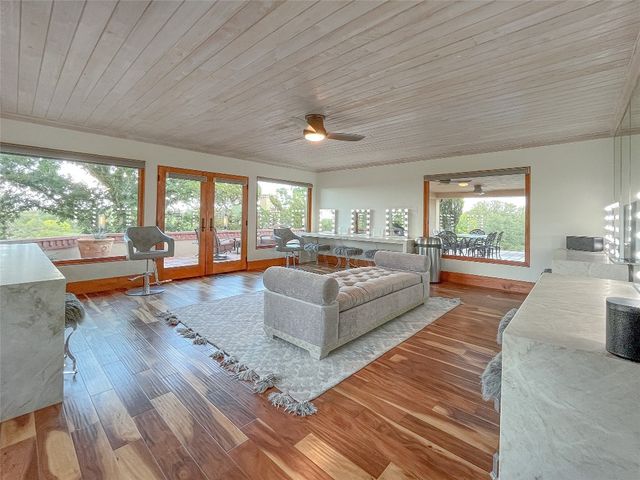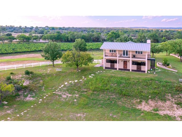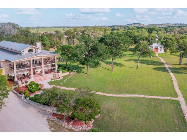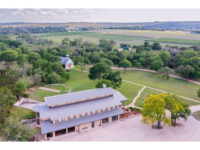 This stunning destination-style wedding or corporate retreat getaway lies nestled on approximately 70+ acres of pristine Texas Hill Country. Just a short drive from downtown Fredericksburg, the impressive property and opportune business venture offers lodging, unspoiled views, a long list of quality improvements, a tranquil wet weather creek, and many more amenities. This ranch consists of 19 structures that total over an estimated 35,000 sq feet, offering the ability to host 300 people, complete with lodging for up to 90, and on-site parking for all. As an additional bonus, the property also offers approx. 4 acres of Cabernet Sauvignon vines. If there’s no interest in vine management, current owners are willing to lease land and purchase fruit for $2k/ton. All real estate, furnishings and fixtures, and business convey with the sale. Structures include restored German historic homestead (9000+ sq ft CAD), massive lodge (8700+ sq ft CAD with 15 bedrooms, 15 bathrooms), open air chapel (built in 2019), luxury reception hall (8800+ sq ft CAD, built in 2019), cocktail hour pavilion (built in 2020), 8 individual cabins (built in 2019), 3 cottages (built in 2020), horse stables with above-stable apartment (perfect for foreman's quarters), skeet range lounge, warehouse for rentals/storage and lastly, dog kennels with separate runs. Other bonuses include professional trap and skeet range, wet weather creek, 60' diameter fountain, extensive landscaping, regulation horseshoe pit, custom built-in BBQ pits, outdoor basketball court and MORE. Every room in this monstrously sized property has been extensively curated with up-scale and unique furniture and art, all of which conveys, creating a turnkey opportunity for the next owner. This is a MUST SEE to understand the magnitude of this ranch! Property booklet describing each structure and amenity is also available.