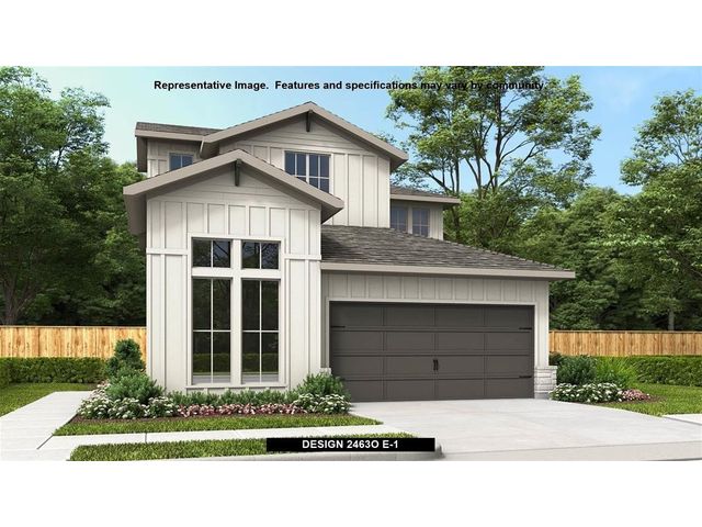 Welcoming side entry features 13-foot ceiling that leads to home office and family room. Kitchen offers generous counter space, corner walk-in pantry, 5-burner gas cooktop and inviting island with built-in seating space. Dining area with wall of windows just off the back patio. Primary suite includes bedroom with wall of windows. Dual vanities, glass-enclosed shower and large walk-in closet in primary bath. Game room, a guest suite with a full bath and additional bedrooms completes the second floor. Abundant closet space throughout. Covered backyard patio. Half bath just off two-car garage.