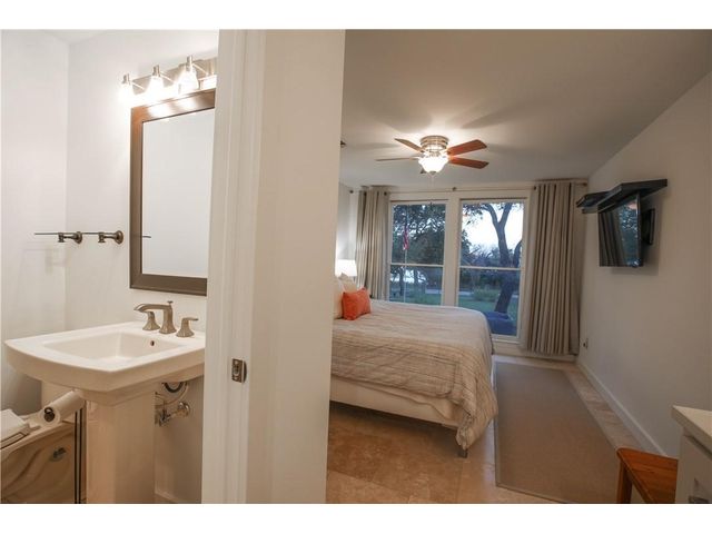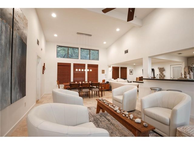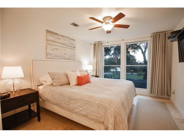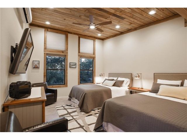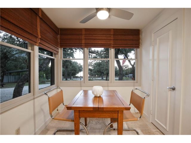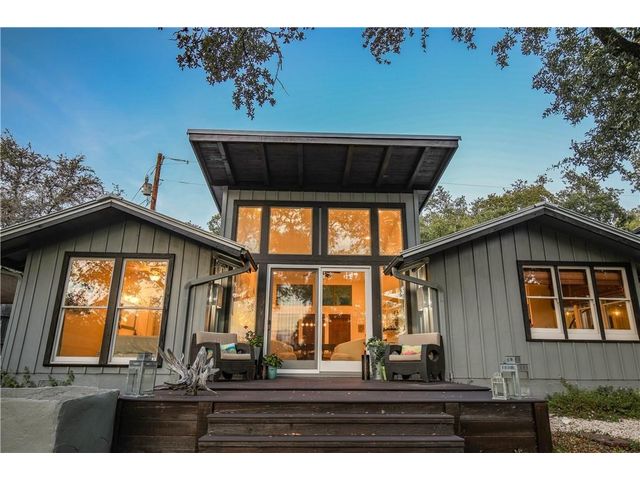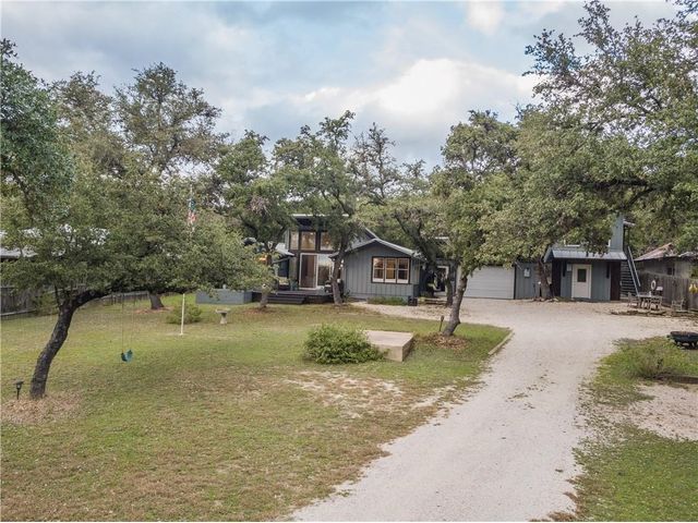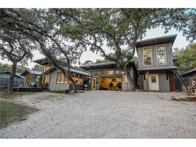 Experience the perfect blend of city living and Texas hill country charm in this meticulously renovated (2010) residence nestled within a secluded lake community overlooking the picturesque Lake Travis. The main structure boasts two spacious living areas, expansive vaulted ceilings adorned with transom windows, and sliding glass doors that offer captivating views of the lake and hill country. The kitchen seamlessly connects to both living areas and the dining space. The primary suite, situated on the main level, provides a stunning panorama of the lake. The secondary structure features two primary suites, each equipped with full baths, distinguished by wood ceiling accents, slate tile, and separate entries. The garage area can be repurposed for storage or outdoor living, providing a serene vantage point with breathtaking views of Lake Travis. Whether used as a primary residence, vacation home, or a rental property, residents can relish lake access at the nearby neighborhood park, offering opportunities for fishing, boating, and kayaking. Embrace the tranquility and versatility of this property in a setting that seamlessly combines modern living with the natural beauty of the Texas hill country.
