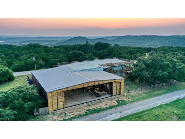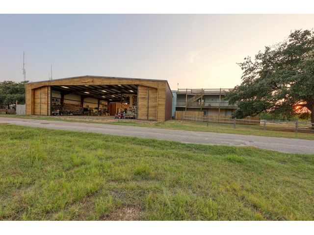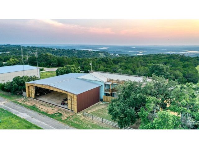 Experience aviation as a lifestyle and own property that has endless possibilities! Zoned C-4, it can continue to be used as a wonderful, peaceful, livable home, or it could be used as a brewery, AirBnB, small business, warehouse, RV park etc.... If you're a small aircraft pilot, it's great to have a runway at your convenience so you can taxi from your home or hangar to set out on your journeys with ease. Rusty Allen Airport (KRYW) is a 3800 ft runway 15/33 1230MSL. The home has 3,500sf of deck area wrapping around 2 levels (floor 2 & roof) for amazing views of Lake Travis and the Hill Country. Framed with 2x6 walls and 10' ceilings throughout for energy efficiency and a 4 heat pump HVAC. Pre-wired throughout the house with 24 individual outlets for ethernet, phone, and CATV. Circulating hot water for “instant on” at any of the 12 sinks or 3 showers. Two sets of kitchens; the upstairs kitchen contained in open floor plan: two convection ovens, six burner cooktop, two dishwashers, three cast iron sinks, wood countertops and, for storage, 29 drawers. Wood floors in the living room, kitchen, and dining room. Huge 1,100 sq. ft. "man cave" adjacent to the downstairs kitchen/bar area. Doors from the man cave completely open to the hangar. This is where the fun is! Pool table, dart board, foosball, 2 kegs, urinal, shower, surround sound, huge space for couches and big TVs! House your pilot, your company, or just your family and all of your toys here.