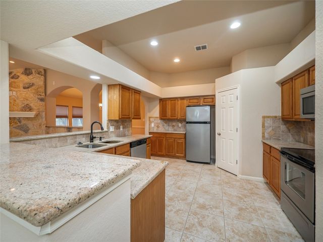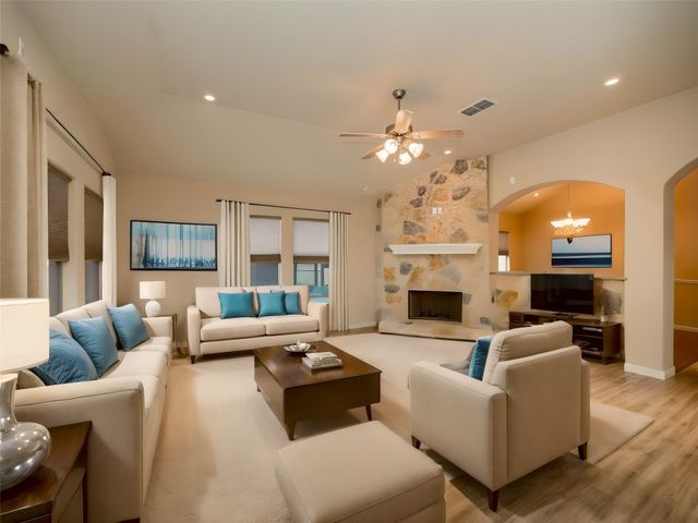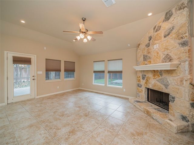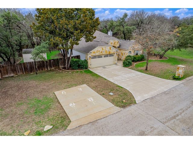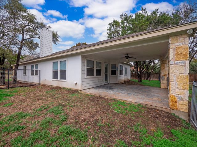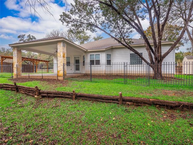 Welcome to your Hill Country oasis just a stone's throw from the charming city of Wimberley! This 4 bed, 2 bath, 1,912 SF home is the epitome of comfort and style. The heart of this home is undoubtedly the cozy living area, where a floor-to-ceiling stone fireplace becomes the focal point of gatherings with family and friends. The spacious kitchen is a dream come true for any culinary enthusiast. With granite counters, a large pantry, and ample workspace and storage, you'll have everything you need to create delicious meals and entertain effortlessly. Whether it's a quick breakfast at the cozy breakfast area or a formal dinner in the elegant dining room, this home has multiple dining spaces to suit your every need. The primary bedroom offers a connected bonus room, allowing you to customize your space to fit your lifestyle. The primary bath is a true sanctuary, featuring a dual vanity and a beautiful extended walk-in shower. The secondary bedrooms share a full bath. With plenty of natural light and ample storage, these bedrooms are designed to be both stylish and functional. Step outside onto the extended covered patio and immerse yourself in the serene beauty of the shaded backyard. There's an additional detached covered patio that adds even more versatility to your outdoor living experience.