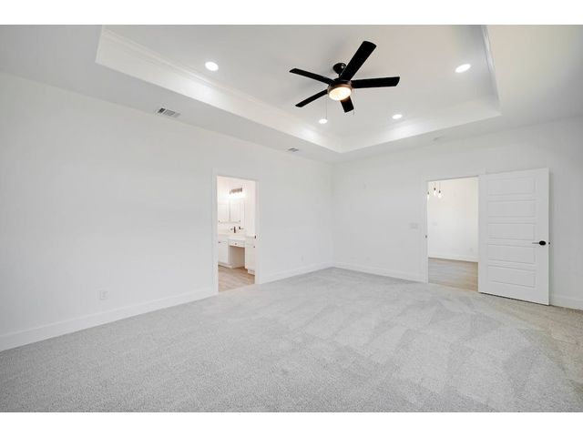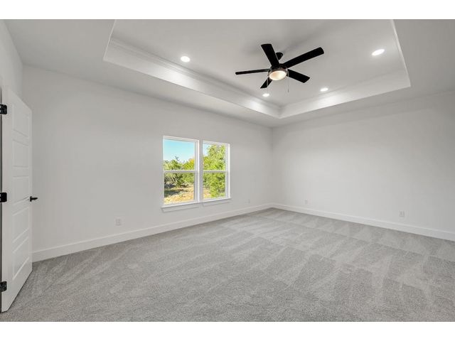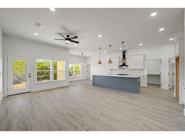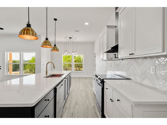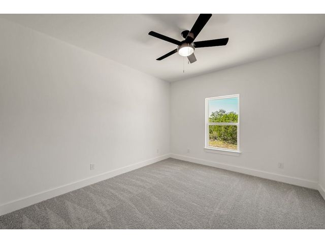 New single story home located in Rockin J Ranch home of Vaaler Creek Golf Club. Located on a golf course corner lot with an inviting open floor plan offering 3 beds, 3 full baths, and a versatile office/4th bedroom. Indulge in luxury with an oversized kitchen island, with black ss appliances, pot filler, large pantry, chefs butcher block counter, and a laundry room with a built-in sink. Enjoy the spaciousness of 10 ft ceilings throughout the family, kitchen, and dining areas. The master bedroom boasts a tray ceiling, and the entire home is adorned with Cambria countertops, soft-close wood cabinets and more. The 2-car garage is equipped with an electric car charger, plus a separate golf cart garage. Property ownership allows for 3 rounds of golf a month. Rockin J Ranch amenities include gated entry, junior olympic pool and a park. SELLER IS OFFER A 2/1 BUY DOWN on this Texas Hill Country gem!!! Your dream home awaits - schedule your tour today!
