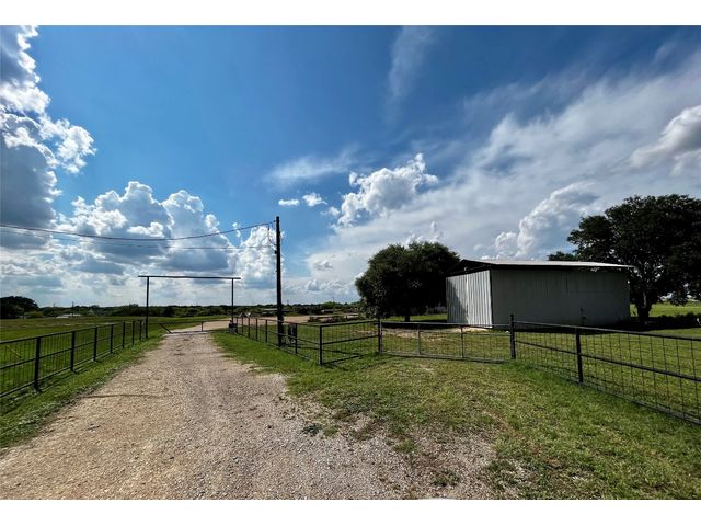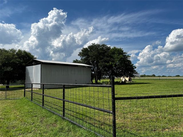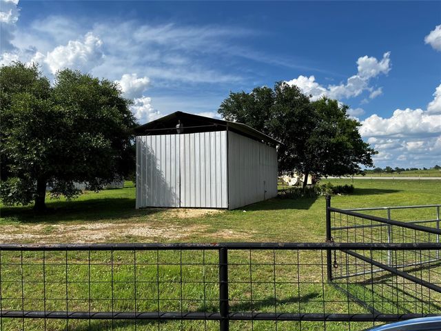 Great 5 acre corner lot fronting SH304. Pipe entry gate with good caliche drive and large caliche parking pad currently used for large equipment storage. Tall metal building 22 x 45 stores a large semi truck or can be used for RV or other equipment. Water and electric on property, completely fenced and has nice pond with liner. Road is paved on both sides with easy access to SH 304 and good visibility. Lot has had good prep work and has good solid ground for commercial use.