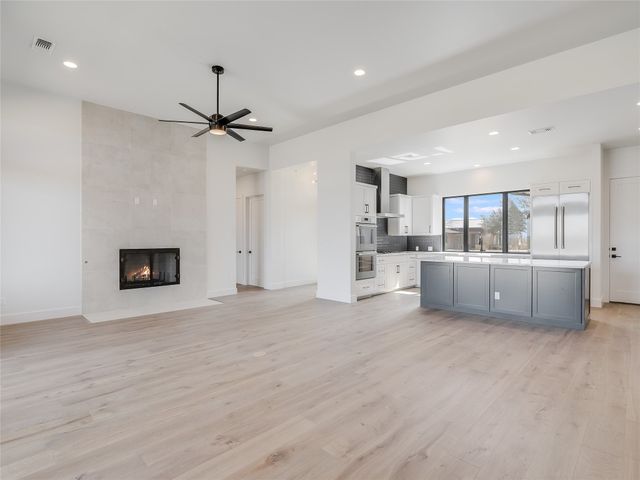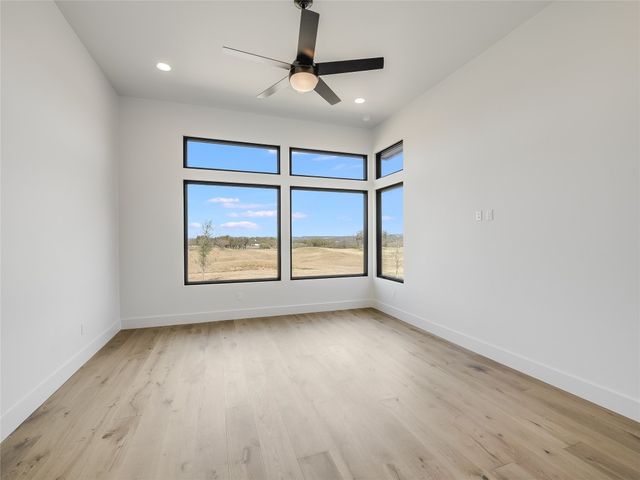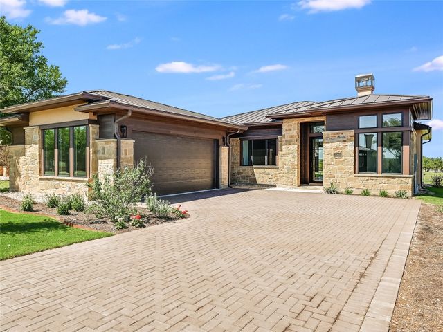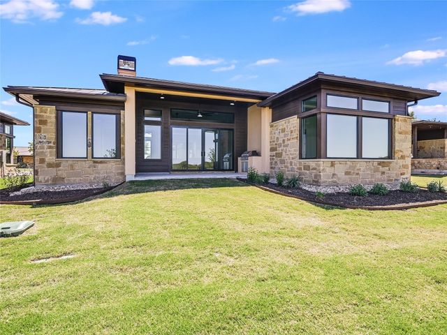 A new single-family home located on the Golf Course in the private gated country club community of Lake Cliff on Lake Travis. This 1,886 square foot home, built by Canyon Homes, LLC, has a two-car + golf cart garage. The home includes high end finishes throughout including wood and tile floors, Thermador appliance packages, high 10–12-foot ceilings, 8-foot solid core interior doors, foam insulation, insulated garage doors, epoxy coated garage floor, covered patio, built-in BBQ, and large windows offering unobstructed views of the Arnold Palmer-designed golf course. Golf and Racket Club memberships are available. Limited membership in the golf club means no tee times required. Play when you want. A $200 monthly fee includes maintenance of the landscaping and lawn. Perfect for a Lock and Leave home or for a buyer who wants a Country Club lifestyle. Owner/Agent