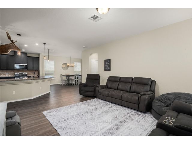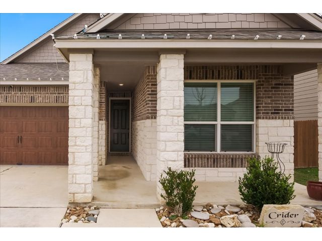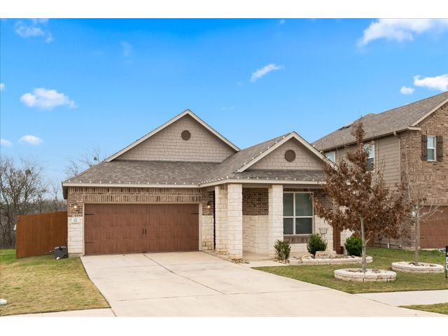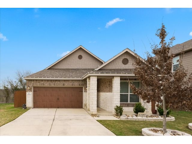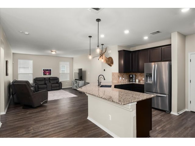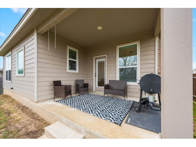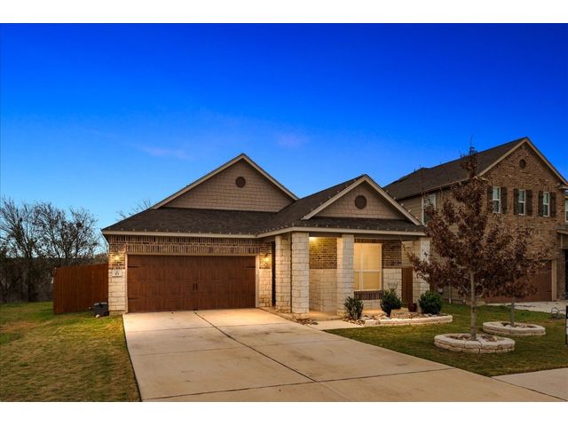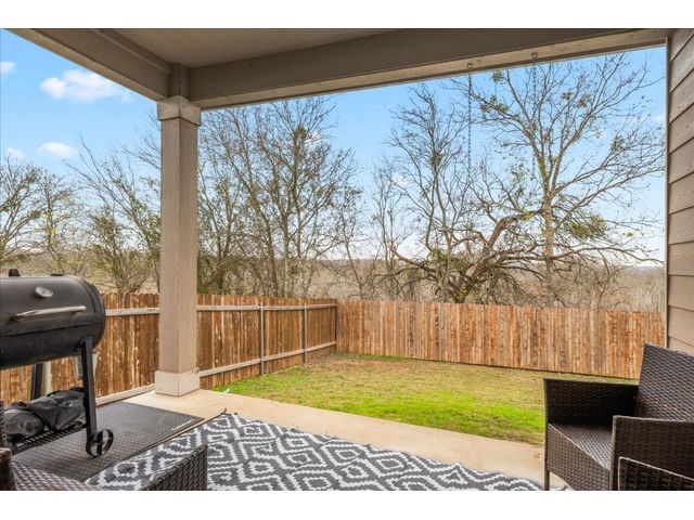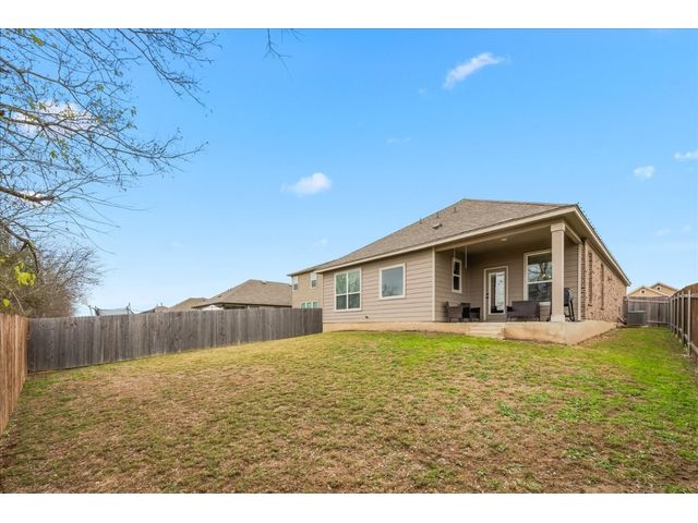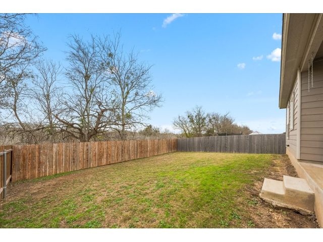 Pristine single story home located between Kyle and Lockhart. This 3 bedroom 2 bathroom home is situated on a private lot that backs up to private land and green space--just one neighbor! Recently installed luxury vinyl plank flooring in all living areas is easy to clean and maintain. The spacious kitchen is open to the living and dining room. Enjoy granite counters, breakfast bar, abundant cabinet space, a tile backsplash, stainless appliances, and a huge walk in pantry/laundry room. The primary suite is at the rear of the home. It includes an en suite bathroom with dual vanity, soaking tub, and walk in shower with neutral tile. Two secondary bedrooms are at the front of the home, are carpeted, and share a spacious hallway bathroom with dual vanity and a tub/shower combo. The backyard has a covered patio and is very private. This home is just 1 block to the community playground and sports court. You cannot beat this location that offers quiet living near Austin and San Marcos.