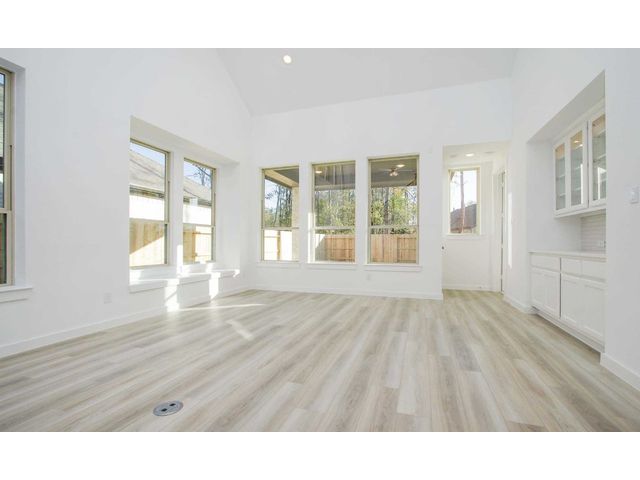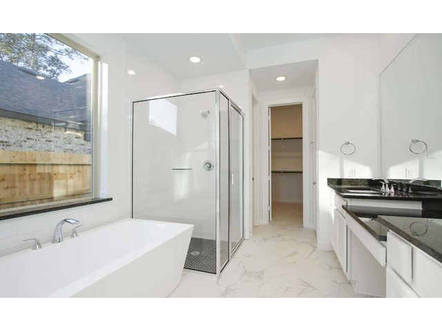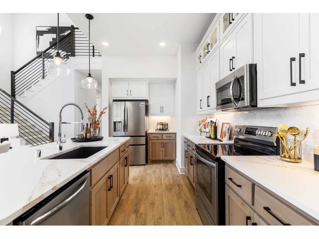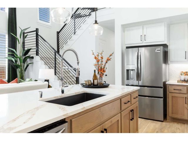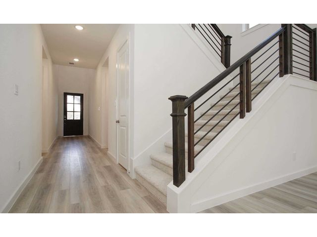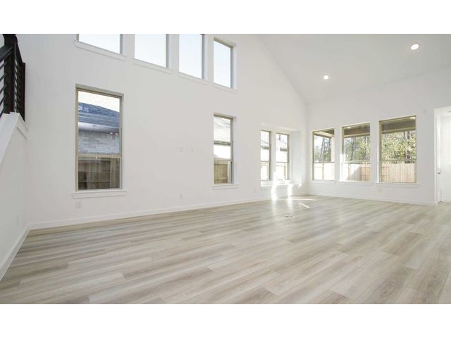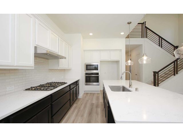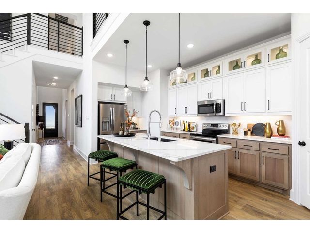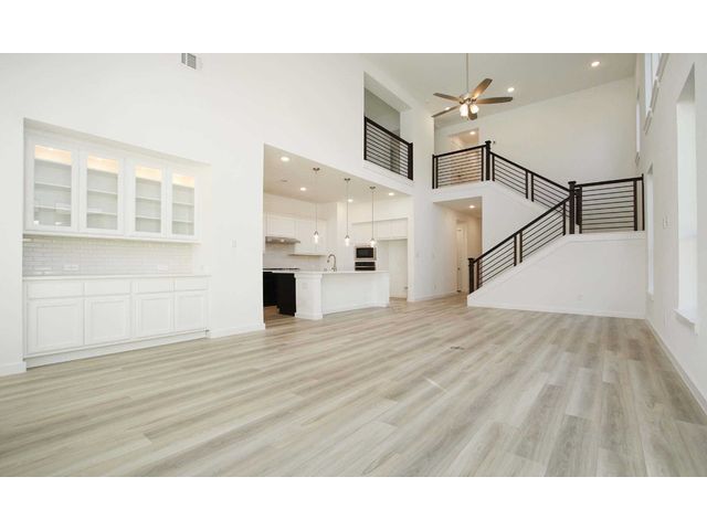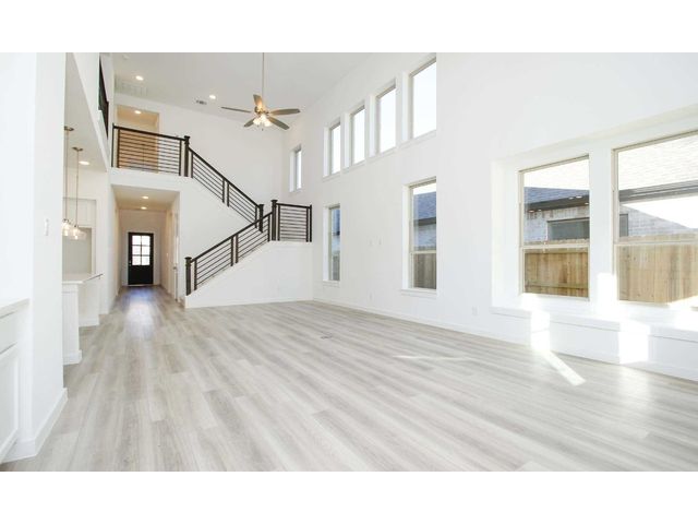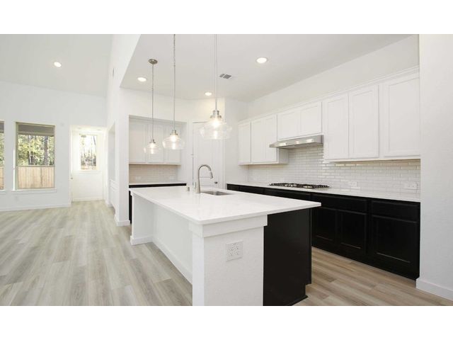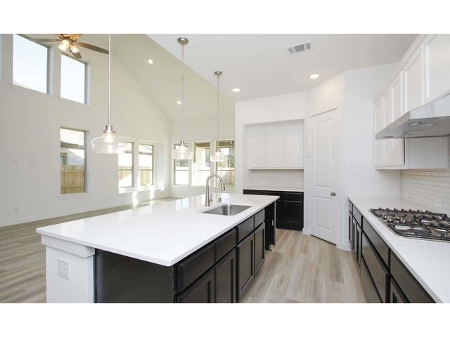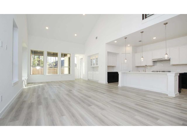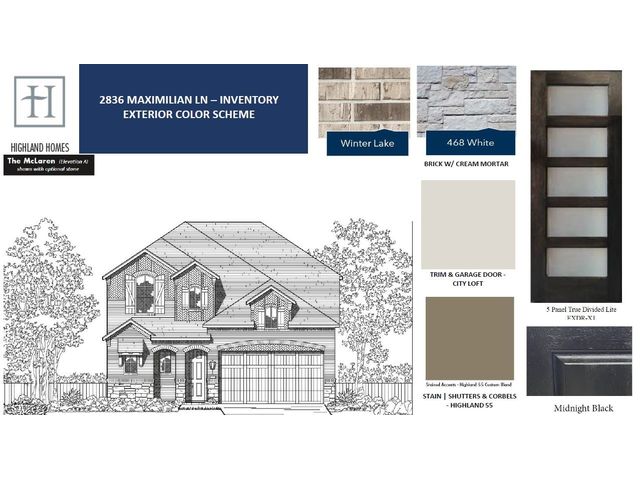MLS# 6295883 - Built by Highland Homes - Ready Now! ~ NOW UNDER CONSTRUCTION! The McLaren floor plan is a FAN FAVORITE in our Artisan series. This 2 story home, offers tall vaulted ceilings just shy of 20' in the open family and dining room, showcasing a gorgeous open railing stair case. The home has real wood floors throughout all common areas, and some pops of fun accent tiles in the laundry room and kitchen backsplash! The kitchen features a built-in gas cooktop, stainless steel appliances, and a classic wrapped island, with both white and mystique black stained cabinets for a modern contrast design. The countertops are a gorgeous Calacutta quartz for a sleek finish. The Primary Bath has double vanities with a beautiful freestanding tub, and a shower with a tile pan floor. The home is 3 sides brick with an added extended patio, and an upgraded stained wood door. This home is going to be STUNNING! Contact the Sales Counselor to learn more about this property!!