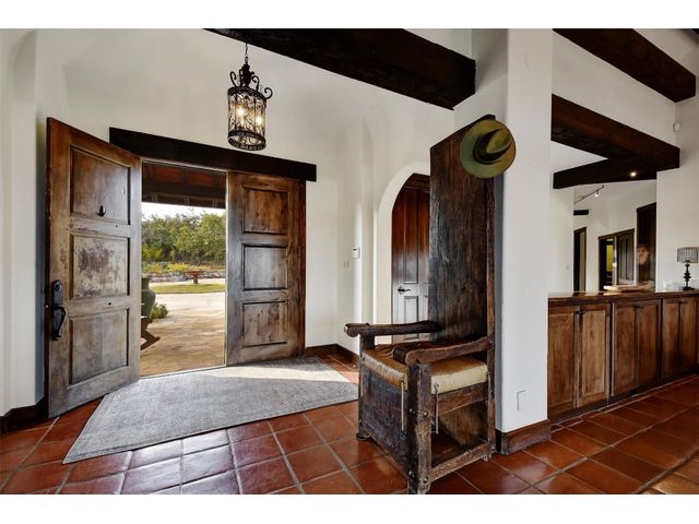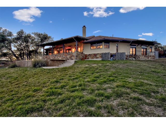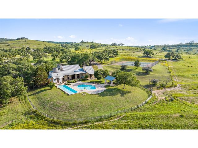 Imagine owning a piece of a 2,000-acre ranch nestled in the rolling hills of Blanco County, where 1,500 acres dedicated to open space and 22 miles of established trails, majestic hills, picturesque valleys, and wildflower-rich hillsides are just outside your doorstep. The Preserve at Walnut Springs is an exclusive ranch community designed for families who are as passionate about adventure as they are about relaxation, offering premier amenities, burden-free maintenance, and an abundance of outdoor recreational opportunities. This gorgeous Spanish-style home, seated on a secluded 5.7-acre estate, offers a rare opportunity to experience the unmatched allure of being a part of the Preserve at Walnut Springs community. Constructed in 2005, the 3,855 sqft residence offers three bedrooms, four bathrooms, and a generous three-car garage. Distinguishing features include elevated wood-beamed ceilings, three inviting fireplaces, distinctive tile work, spacious rooms and closets, arched walkways, an eye-catching terracotta roof, and a circular concrete driveway. Enhancements to the property include a private well, a newly added rainwater collection system, and a delightful pool that presents panoramic views of a neighboring vast 5,000-acre preserve. Throughout the property, from windows to porches, one can enjoy breathtaking Hill Country vista views and ultimate privacy. The community features a beautiful clubhouse, swimming pools, tennis courts, a spring-fed swimming hole, stocked fishing ponds, hunting opportunities, an equestrian center with stalls, a covered arena, and more! Residents also enjoy the convenience of a full-time concierge service and the benefits of a community-wide ag exemption. Located in Johnson City amidst renowned wine country and spectacular natural surroundings the Preserve is conveniently within 60 miles of both Austin and San Antonio. Truly Texas Hill Country living at its finest—schedule a showing today and preview this extraordinary community!