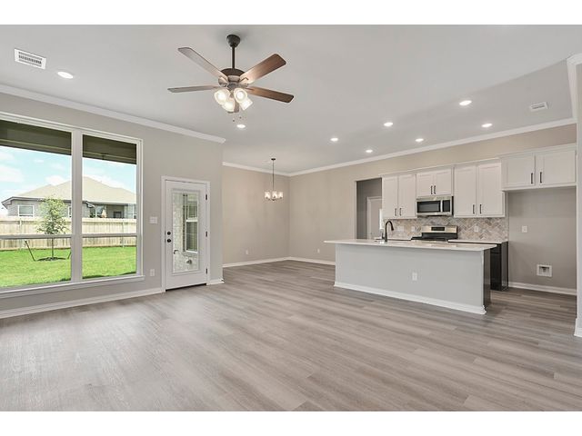 Completed Southern Pointe move in option available! Kaleo Homes shines with the Brazos Plan in Southern Pointe! This home has 4 bedrooms & 3 baths, plus a 2 car garage. This functional and well designed home features beautiful finishes throughout! The open concept provides a centerpiece with its well appointed kitchen featuring quartz countertops, stainless steel appliances, large pantry, and an Island with an eating bar. The primary suite wows you an oversized walk in shower, soaking tub, double vanities. and a large walk in closet. Other standard Kaleo Homes features include: tankless water heater, a covered back porch with a gas line for a grill, smart home features, security system and more! This well appointed master planned community is like a little resort providing you with endless fun! It has more than 10 acres of parks, trails and 30 acres of open spaces. Amenities for the community include; Resort-Style Pool, Splash Pad, multiple playgrounds, climbing rocks & separate age appropriate playscapes, Pickle Ball Courts, Basketball Court, Baseball Backstop, Fishing Ponds & a Bark Park. Southern Pointe is just minutes from medical, shopping, restaurants & schools. Ask about the current up to $15,000 your way BUILDER INCENTIVE! PLUS washer, dryer and stainless refrigerator.