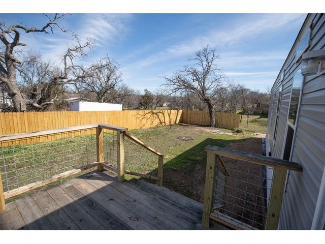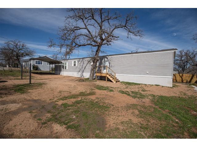 Absolutely adorable 3/2 Manufactured Home on a Large Lot in Granite Shoals close to Lake LBJ! This well maintained manufactured home has tons of great features! Open concept and split bedroom floor plan makes this home flow seamlessly. Vinyl plank flooring, tile backsplash in the kitchen, tons of cabinet space and great built ins for added storage. The master suite features a double vanity, soaking tub, walk-in shower and spacious walk-in closet. The back yard is very spacious and partially fenced with a wooden deck to sit and enjoy the gorgeous Texas weather and wildlife. Brand new 2 car carport was just installed. Lots of space around this home, perfect for an added workshop if desired. Lake LBJ access just down the street via multiple Lake LBJ waterfront POA parks. Short term rentals allowed! *This information is deemed reliable, not guarenteed. Buyer and buyer's agent to verify all information such as square footage, size of lot, year built etc.*