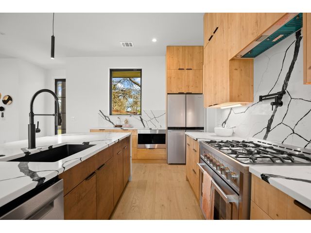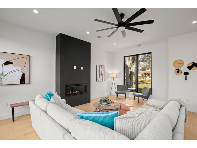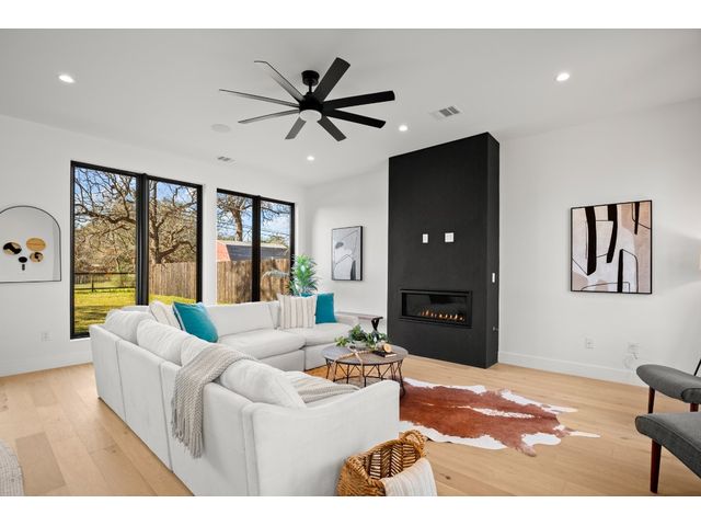 Welcome to 5034 Lansing Drive, your dream home in the heart of South Austin! This brand-new construction masterpiece exudes luxury and modern sophistication, offering a perfect blend of style and comfort. As you step inside, you will be greeted by an abundance of natural light that highlights the open-concept floorplan. The kitchen is a culinary dream with its large center island, stainless steel appliances, and modern black fixtures that complement the sleek countertops and backsplash. The living area features a striking black fireplace, making it a captivating focal point for gatherings or relaxation. Indulge in the designer touches crafted by the builder, including floor-to-ceiling tiling in the powder bath and gorgeous fixtures throughout. Upstairs, discover a second living area, offering an additional space that is perfect for a media room or office area. The possibilities are endless! The cozy primary suite features a large walk-in shower, a spacious walk-in closet complete with built-in shelving, and a luxurious soaking tub. Just imagine yourself sinking into the tub with a good book or your favorite podcast playing in the background – pure bliss! Outside, you will find an expansive backyard, complete with a covered patio – an ideal spot for your next barbecue or simply relaxing while enjoying your morning coffee. Tranquility meets convenience with easy access to highways for seamless commuting. Explore nearby South Congress and South Lamar, where eclectic shops and diverse dining options await. More shopping, dining & entertainment venues are located just a short drive away in the Sunset Valley and Westgate areas. This location is also ideal for professionals who work at nearby St. Edwards University, St. David’s Medical Center, and Baylor Scott & White. Don't miss the opportunity to make this exquisite property your own.