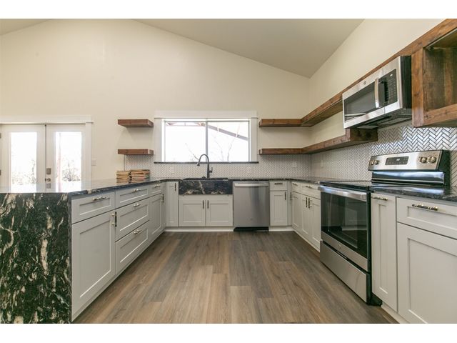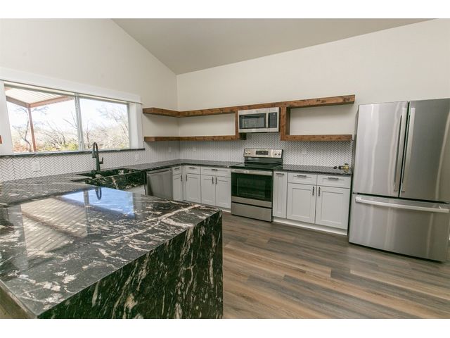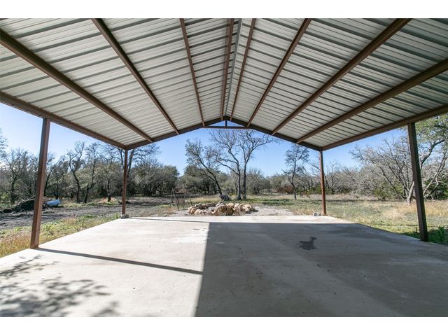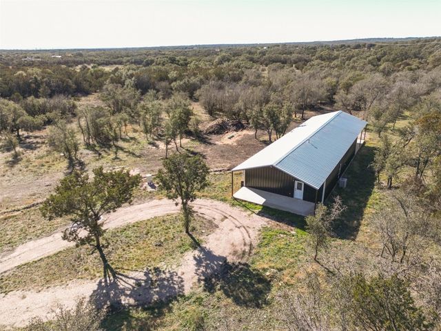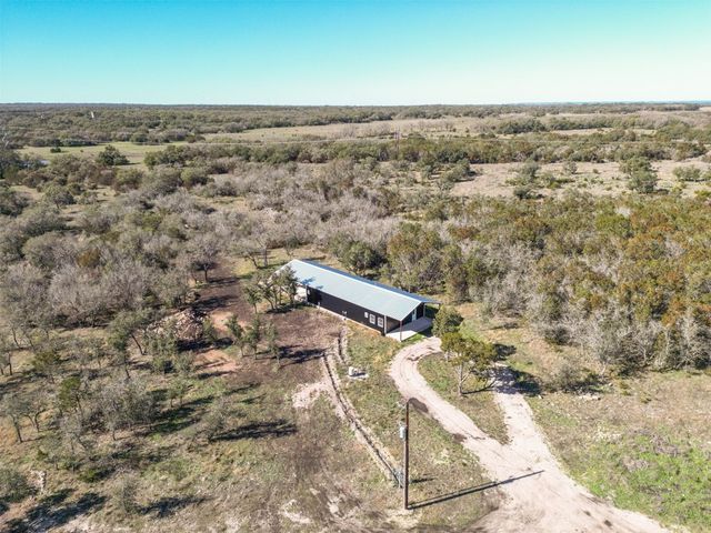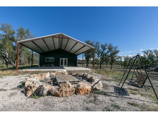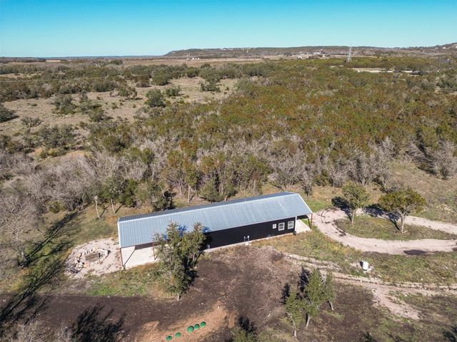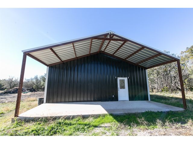 This exclusive barndominium offers a unique open concept experience in Hill Country Texas. Sitting on just under 11 acres there is plenty of room to expand or build a main house while being able to live in comfort in this home. It features many added upgrades such as a porcelain fireplace, vaulted ceilings, granite counter tops, country style flooring, brand new stainless steel appliances, a unique mural in the den, and much more! The property is within minutes from Burnet or Marble falls albeit you will see wild turkeys, white tail deer, and jack rabbits roaming the serene property. Be the first to live in this home and melt into the tranquil and peaceful country living this property has to offer. With a brand new water well, septic system, and tankless water heater your needs can be met even if you bring animals with you or never want your hot water to run out. Oak Vista sits just right outside the heart of the city and features the Delaware Springs Golf Course and Airport at the entrance of the subdivision. Allowing this property to check a wide range of boxes for the new home owners!