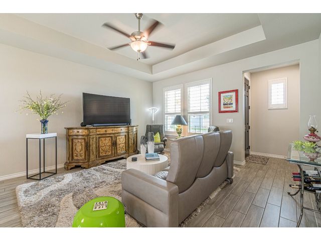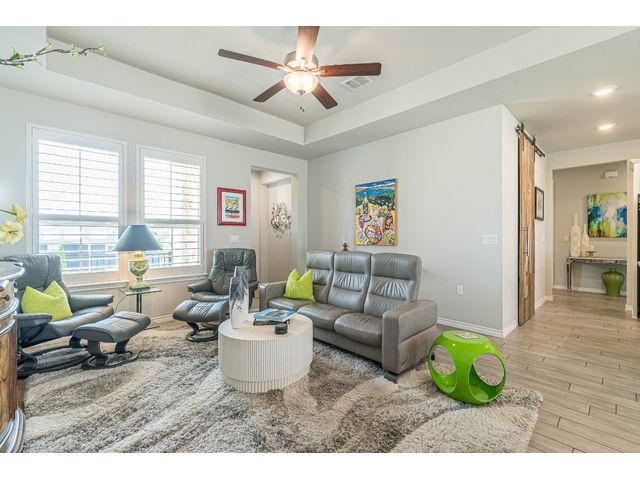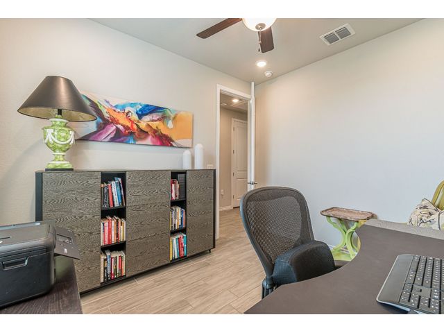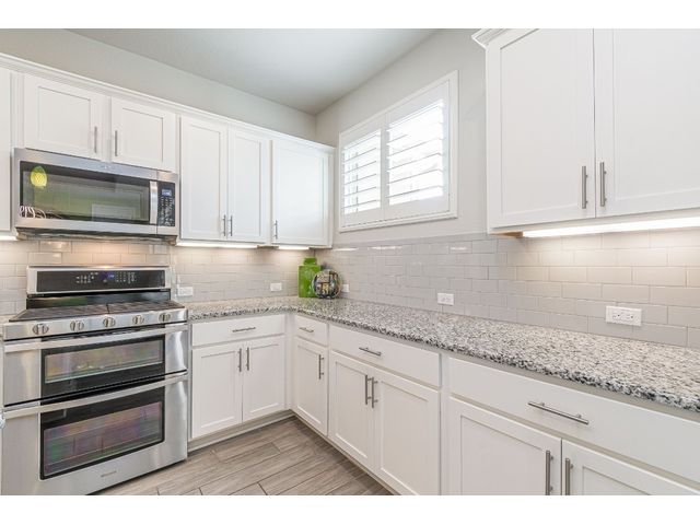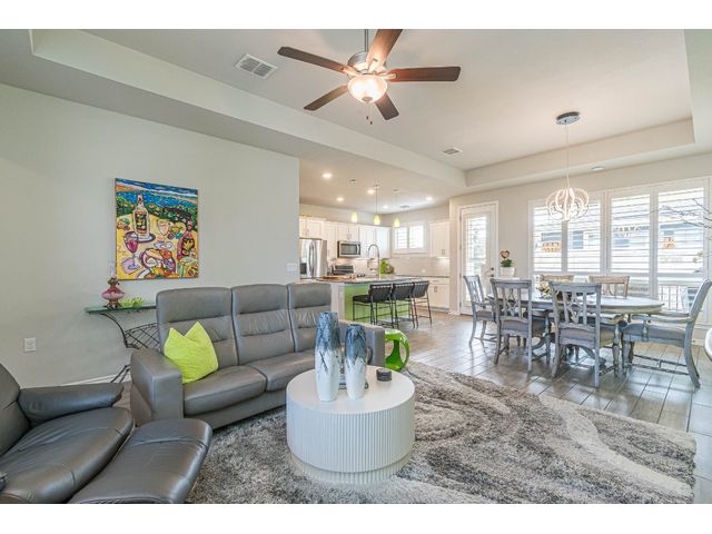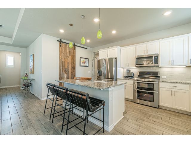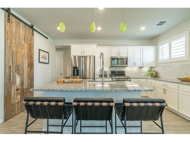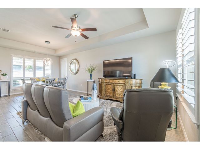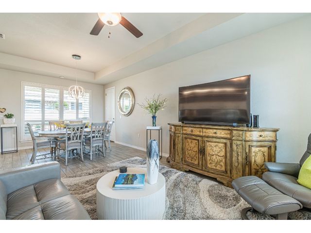 Ready for move-in! Beautiful 2-3 bedroom home in Kissing Tree; walking distance to the amenities & restaurant & offering a Home Warranty. Owners selected an additional $60k in upgrades! Features include 2 car garage plus additional storage space; golf cart outlet; tankless water heater; whole house gutters; tall ceilings; Plantation Shutters throughout; tray ceilings; epoxy patio & sidewalk; water softener/water filter; custom primary closet design; custom pantry; storm door; cabinets converted to drawers; custom lighting; farm-style sink; upgraded cabinets; under cabinet lighting; bathroom wall cabinets. Kissing Tree offers 20 acres of amenities including a beautiful resort pool, an indoor/outdoor activity pool, 18-hole Troon golf course, cafes, bars, biergarten, hike and bike trails, pickleball courts, bocce ball courts, horseshoe pits, state of the art fitness center, live music weekly, and more. In Kissing Tree every day brings new opportunities for connection, excitement & enriching experiences. Cottage grounds are maintained by Kissing Tree & included in the HOA fee.