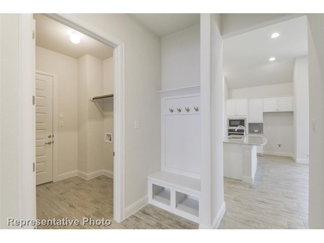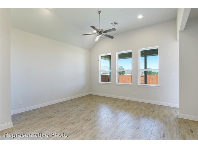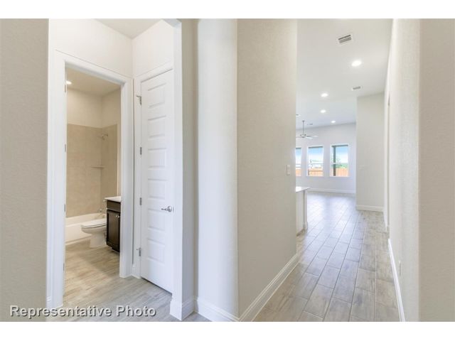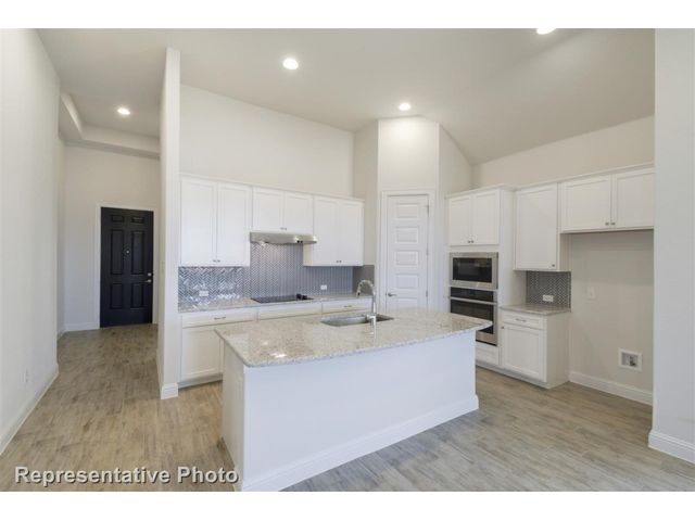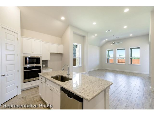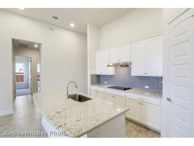 MLS# 9853304 - Built by Brohn Homes - November completion! ~ Gorgeous Brohn home with inviting brick exterior. This beautiful home has tons of natural light and twelve foot ceilings in all the main rooms. You will love cooking in this kitchen with grey cabinets, designer backsplash with stainless steel appliances, and gorgeous island. A designer has selected a wood-look tile in all high-traffic areas. The Oaks at San Gabriel has a resort-style pool, seven miles of trails, lots of open space and feeds into the highly esteemed Liberty Hill ISD!!
