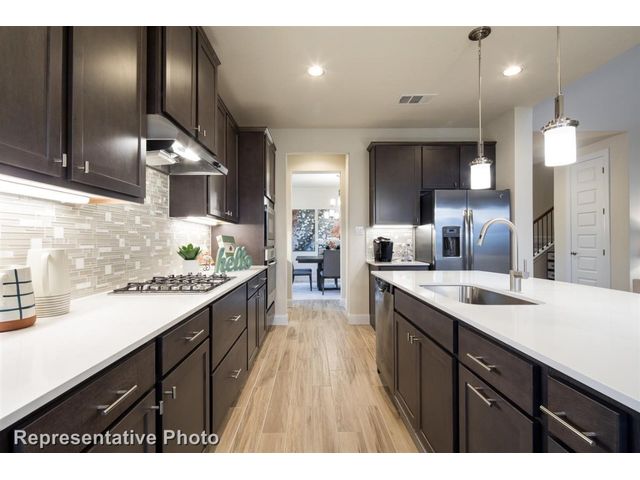 MLS# 8351572 - Built by Brohn Homes - November completion! ~ Tons of upgrades in the spacious and gorgeous 5-4 home in Georgetown's Oaks at San Gabriel. First floor homes study, dining, kitchen, breakfast area, living room, primary and second bed and bath, and utility room. Upstairs has three bedrooms and two full baths, game room, and media room. Upgraded wood-look tile flooring through main living areas, tons of natural lighting, and rear covered patio. Too many great features to list! Stainless steel built-in kitchen appliances, open to family, and high ceilings!!