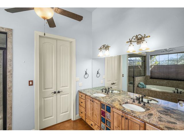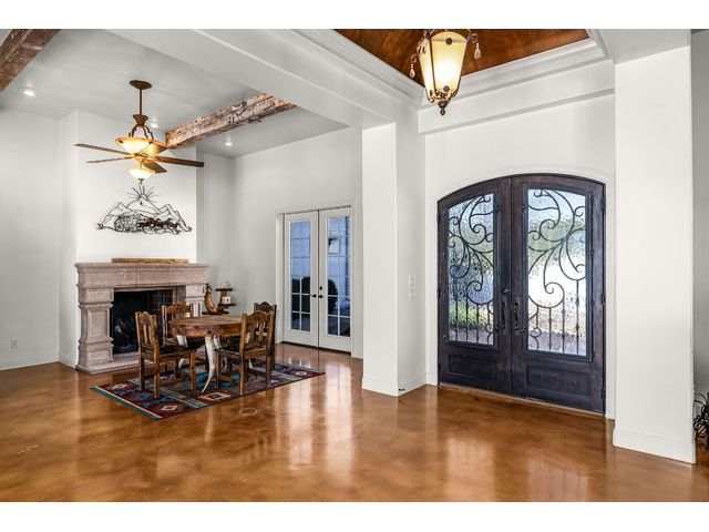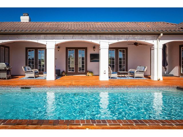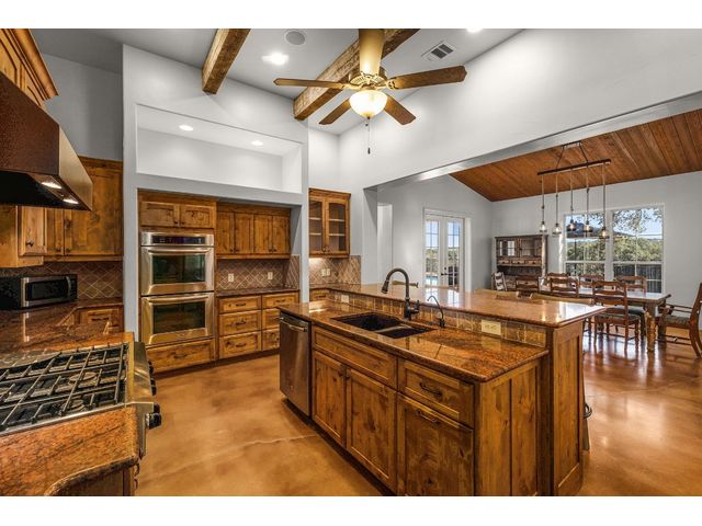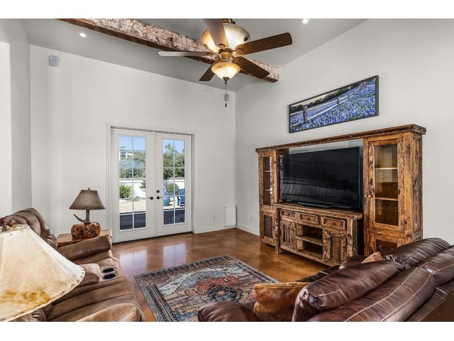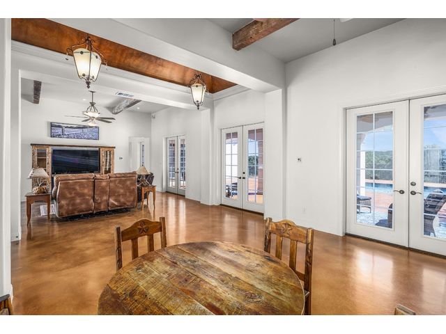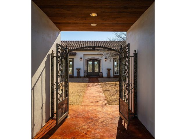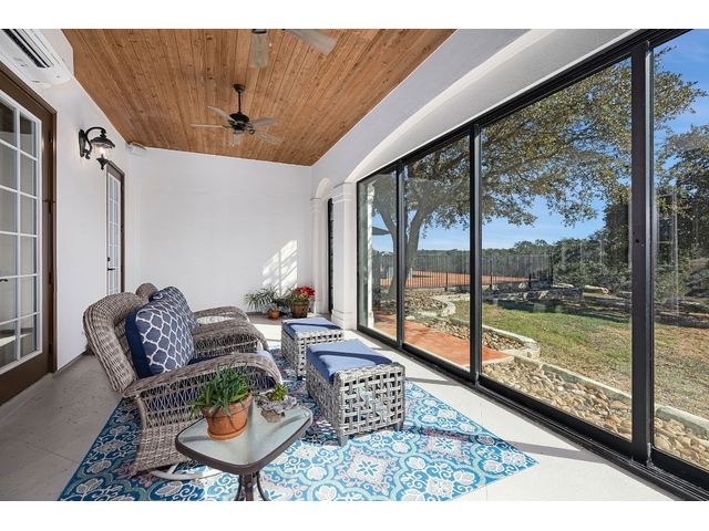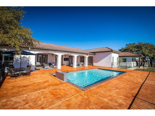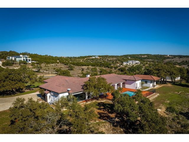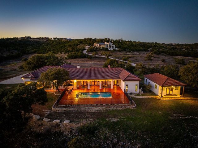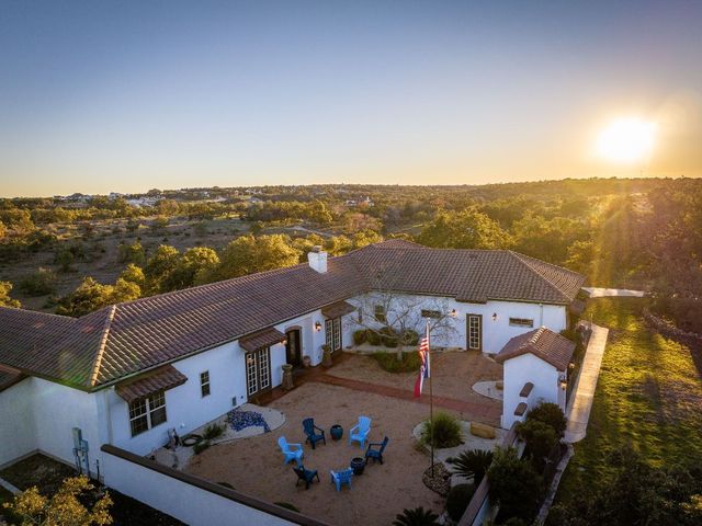 *10 Acres, 3,524 sq. ft., Mother-n-law suite, Detached Workshop, 5 vehicle garage parking, Swimming Pool* Situated amidst scenery of the Texas Hill Country, this Spanish Mediterranean Estate graces a 10-acre parcel which currently holds a wild-life exemption, within the renowned Waggener Ranch. Beyond the wrought-iron gates, a zero-scaped private courtyard welcomes you, setting the stage for the timeless elegance that defines this residence. As you enter the home, the main living areas boast a touch of Kentucky heritage with historic Tobacco plant wooden beams and old-world fireplace lending an air of rustic charm. Designed for versatility and convenience, an in-law suite provides a private retreat for guests or extended family. The main bedroom surprises with a multifunctional area that easily transforms into an exercise area or office. The sunroom directly off the main bedroom offers a tranquil escape, seamlessly connecting the indoor and outdoor spaces through sliding glass doors. Efficiency meets style in the Domestic Command Center/Mud Room leading to the laundry suite with counters, cabinets, sink and built-in ice machine. Culinary enthusiasts can appreciate the kitchen, featuring a 6-burner gas cooktop, double ovens, walk-in pantry, and wine fridge ensuring the heart of the home, is both a chef's delight and entertainer's dream. For those who enjoy hands-on projects, a separate workshop offers a dedicated space for tinkering and creating. Additional storage is provided by the additional detached 2-car garage. The outdoor spaces are an extension of the estate's grandeur, with multiple exterior patios and pool area inviting you to bask in the beauty of the hill side, creating a perfect ambiance for intimate gatherings or large-scale entertainment. In every detail, this country estate embodies the harmonious blend of luxury, functionality, and timeless style, offering a retreat that transcends the ordinary and celebrates the art of gracious living.