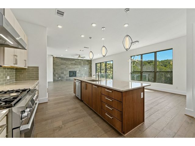 Welcome to 1004 Barrie Drive, a modern home overlooking the breathtaking Balcones Canyonlands Preserve! This stunning home boasts 4 bedrooms and 3.5 baths, offering a perfect blend of luxury and tranquility. On the main level, you'll find a gourmet kitchen with natural wood cabinets, a commercial-style range, double ovens, a bar area with a wine fridge, and natural wood floating shelves. The kitchen seamlessly flows into the dining room and living room, where a fireplace cwith a tile focal wall creates a warm ambiance. Open the sliding door off the living room to step onto a large deck with glass railing, providing a perfect vantage point to soak in the peaceful serenity of the preserve. The main floor also features an office and a half bath for your guests. As you ascend to the upper level, the primary bedroom awaits with panoramic views of the preserve. A barn door leads to the primary bath, complete with an oversized walk-in shower for a touch of luxury. The upper level also hosts a game room with a balcony, offering yet another spot to relish the stunning views. Additionally, two more bedrooms, a full bath, and laundry room complete the upper floor. The lower level unveils another living space with sliders leading to the backyard, a media room perfect for movie nights, a fourth bedroom, and a full bath, providing versatile living options. The City of Lakeway provides a wealth of amenities, including exemplary schools, hike and bike trails, pools with water slides, a lap pool, skate park, sport court, miles of hiking and biking trails, as well as multiple lakeside parks. Multiple boating marinas and golf courses are just minutes away. Enjoy lower taxes and HOA fees than most communities in the area.